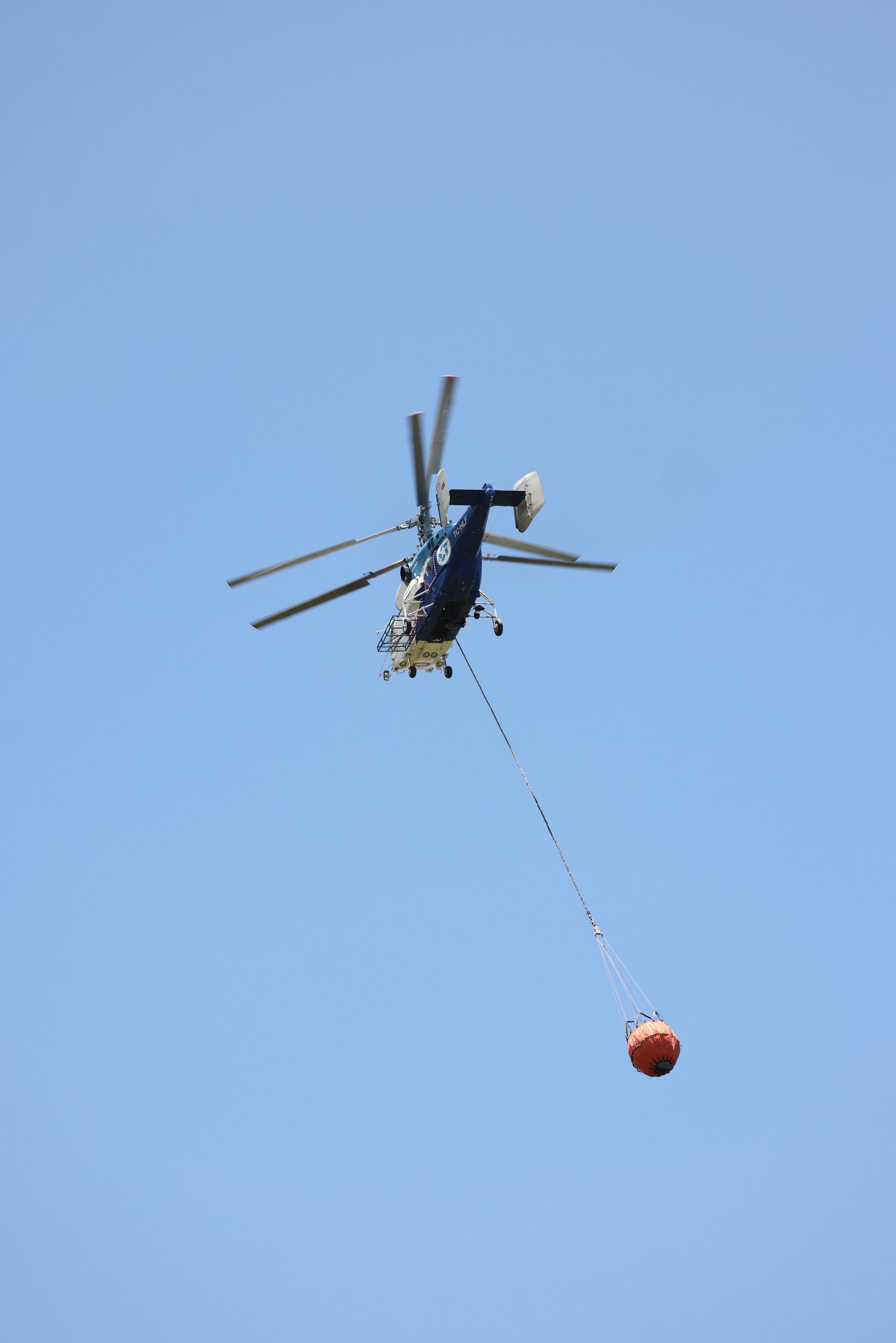 Ekiplerin bölgedeki çalışmaları, yangın söndürme helikopterinden görüntülendi. (DHA)
