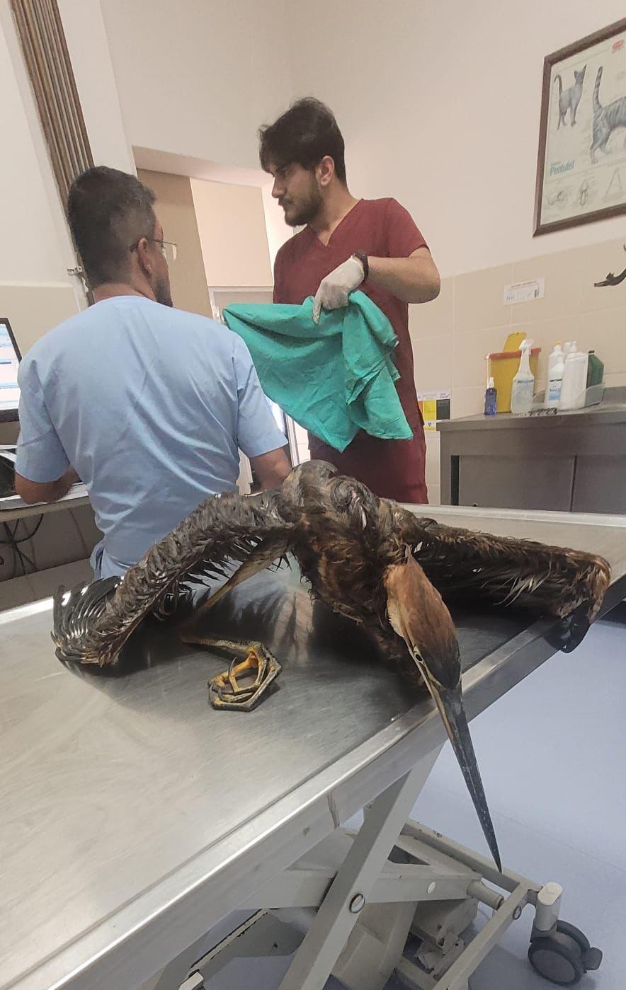 Samsun İl Emniyet Müdürlüğü Atakum İlçe Emniyet Müdürlüğü’ne bağlı ekipler, devriye gezdiği sırada Çobanlı İskelesi'nin altındaki demirliklere takılı balıkçıl kuşu gördü. Polis ekipleri tarafından bulunduğu yerden çıkarılan kuş, tedavisi için Ondokuz Mayıs Üniversitesi Veteriner Fakültesi Hayvan Hastanesi'ne teslim edildi. (DHA)
