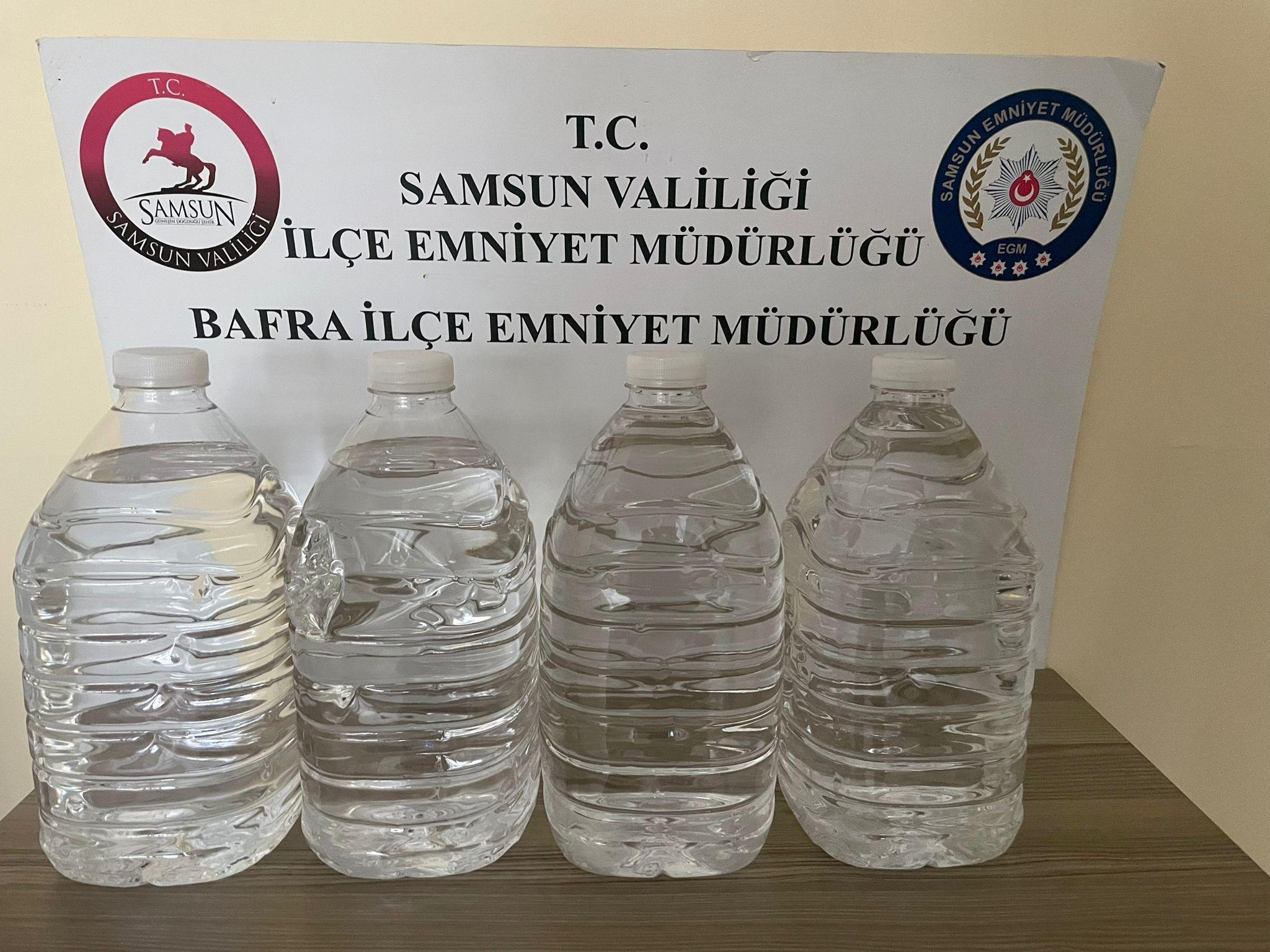 Emre ŞAHİNOL/BAFRA (Samsun), (DHA)- SAMSUN’un Bafra ilçesinde polis ekiplerince düzenlenen operasyonda 20 litre etil alkol ele geçirildi.
