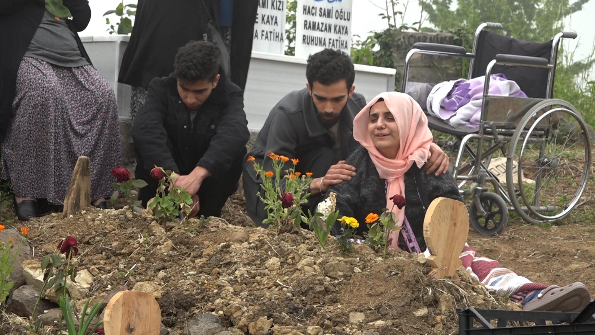 İlkadım ilçesinde yaşayan Çiğdem Kaya, bugün Terme ilçesindeki Akçaykaraçalı Mahallesi’nde, eşinin ve çocuklarının kabirlerini ziyaret etti. Tekerlekli sandalyeyle yakınlarının yardımıyla mezarlığa gelen ve kolunun alçıda olduğu görülen Kaya, çocuklarıyla eşine dua etti, kabirlerine çiçek dikti. Çiğdem Kaya, "Allah'ım ne olur onlara sahip çık. Çok küçükler. Adem, çocuklarımız sana emanet. Yalnız kaldım Adem burada. Kolumu kanadımı kırdılar. Çocuklarımı aldılar benden, nasıl dayanacağım" diye ağladı.