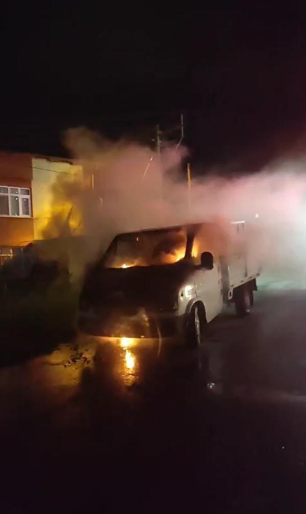 Kamyonetin kullanılamaz hale geldiği yangınla ilgili inceleme başlatıldı. (DHA)