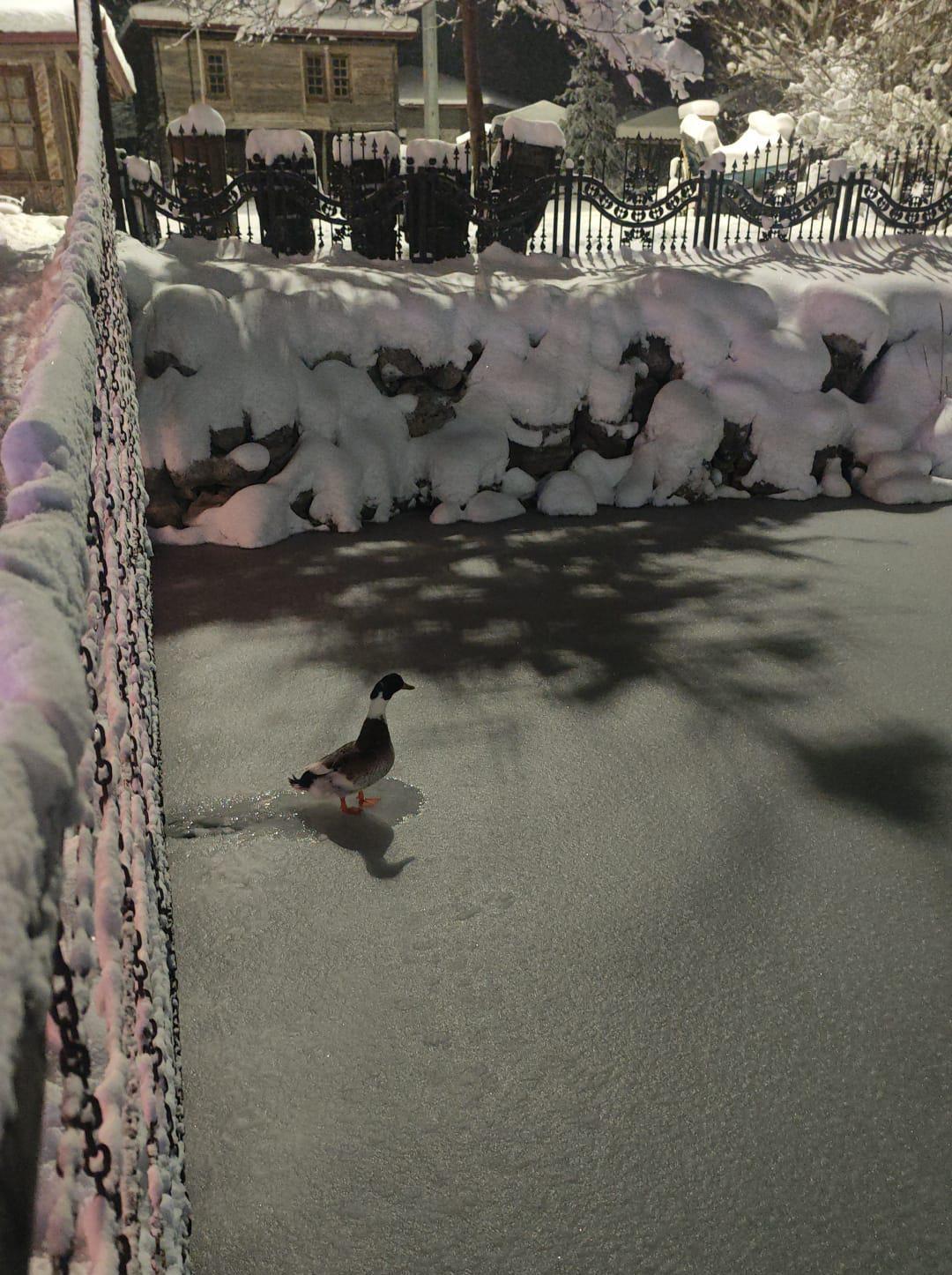 Göl dondu, ördekler yüzemeyince yürümeye başladı