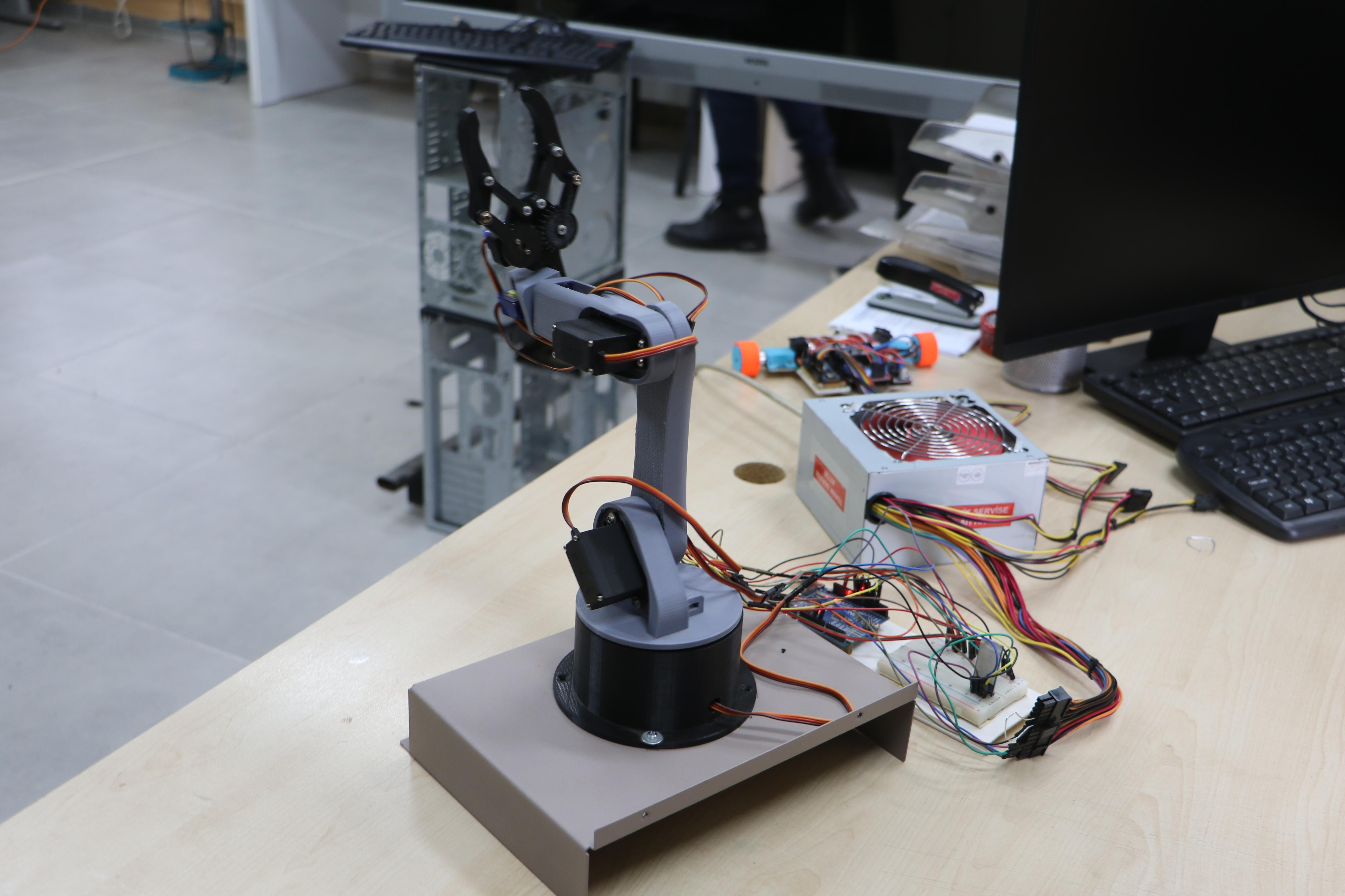 Robotik kol projesi, Bilişim Teknolojileri Alanı Yazılım Bölümü öğrencileri ve öğretmenleri tarafından tasarlandı. Arduino donanımıyla çalışan kol, mobil uygulama üzerinden kontrol edilebiliyor. Sanayi alanında kullanılan modellere benzer işlevlere sahip olan kol, özellikle dar alanlarda ve insan gücünün yetersiz kaldığı durumlarda etkili şekilde kullanılabiliyor. Robotik kolun parçaları 3 boyutlu yazıcıda yapılarak 1 hafta içerisinde tasarlandı.