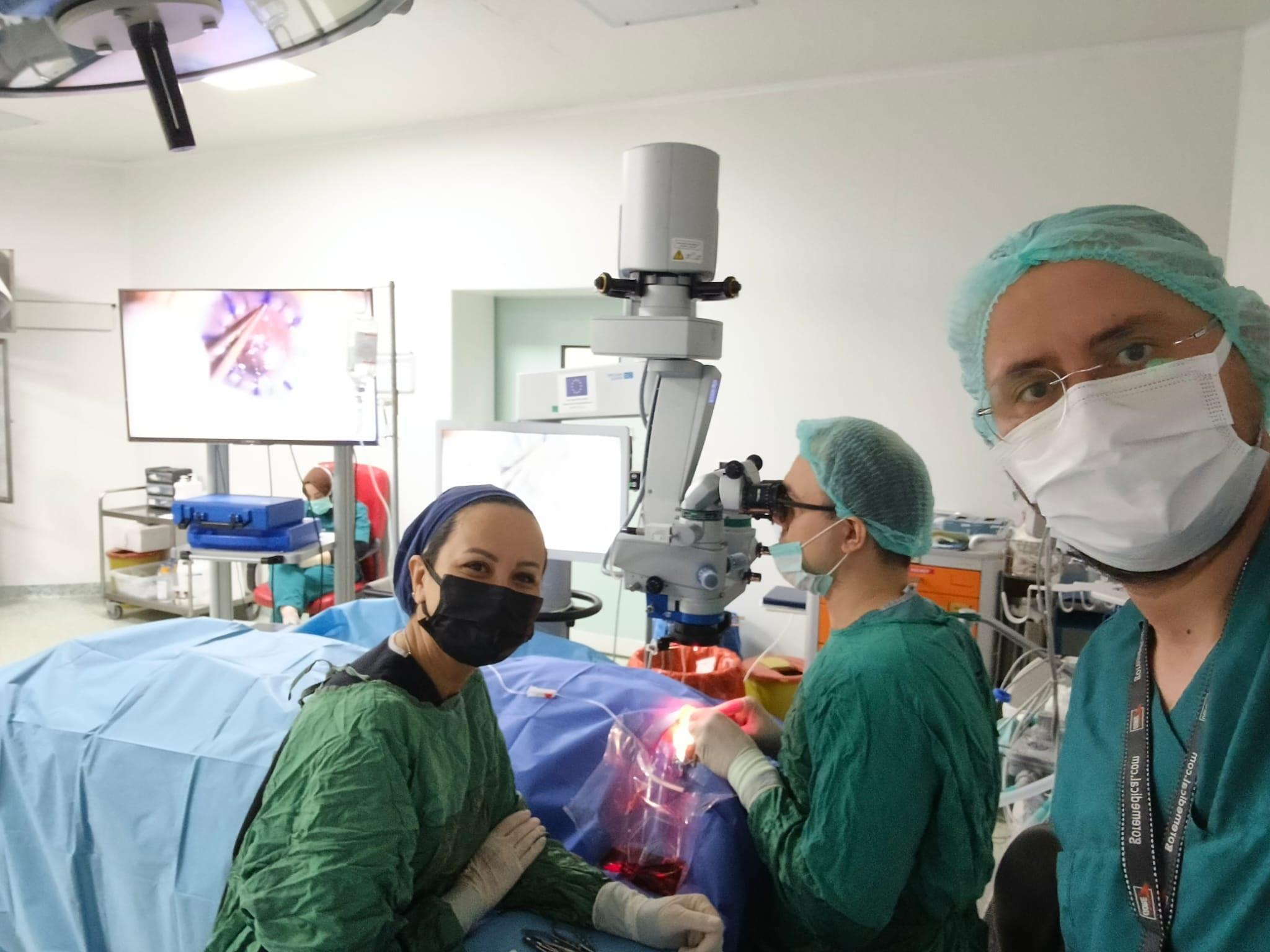 Ameliyatı gerçekleştiren Göz Hastalıkları Uzmanı Dr. Emre Aydın, “83 yaşında hastamız daha önce bir katarak ameliyatı oluyor. Yaşa bağlı olarak gelişen, korneanın en alt tabakasının işlev kaybı anlamına gelen endotel yetmezliği sonucunda, hastada kornea beyazlaşması meydana geliyor. Dış merkezlerde yaklaşık 2,5 yıldır nakil sırası bekliyor. Hasta bana başvurduğunda ben yakında donanımları tamamlayacağımızı ve ameliyatını gerçekleştirebileceğimizi ilettim. Bugün de yeteri donanım sağlandıktan sonra, gerekli prosedürler hallolduktan sonra ameliyatı başarılı bir şekilde gerçekleştirdik. Bölge hastanesi olarak, Ankara’ya ve İstanbul’a gitmek zorunda kalan hastalarımızı mağdur etmemek ve bölge halkına faydalı olabilmek adına, bu tür ameliyatları bundan sonra da hastanemizde gerçekleştirmeyi planlıyoruz. Hastalarımıza inşallah şifa olur” diye konuştu. (DHA)