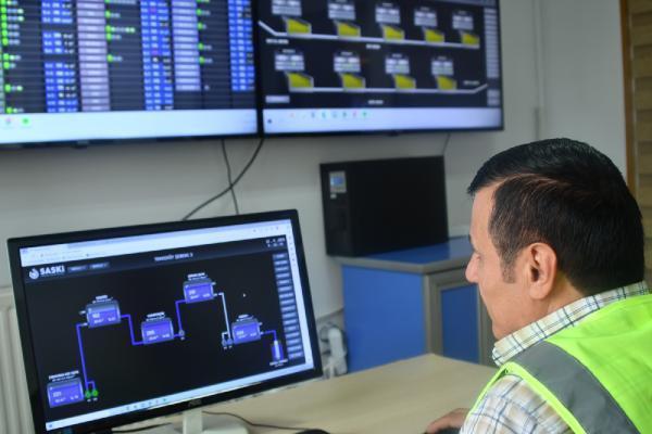 SCADA Sistemi ile izlenen 289 tesisin ölçüm yapan elektronik cihazlarla donatıldığının da altını çizen Mercimekci, bu cihazların yaptıkları ölçümler yedekli haberleşme sistemleri üzerinden SASKİ Kontrol Merkezi’ne ulaştırıldığını bildirerek şunları söyledi: "Depo seviyeleri ve pompa çalışma süreleri otomatik senaryoda insan müdahalesine gerek kalmaksızın kontrol edilerek abonelere içme suyunun kesintisiz ulaşması sağlandığı gibi gerekli hallerde SCADA Sisteminin hem sahadaki mobil cihazlar üzerinden hem de merkezdeki bilgisayarlardan, vanalara ve pompalara komut (kapama, açma ve çalıştırma, durdurma gibi) gönderme kabiliyetine sahip. Dış istasyonlarda yapılan ölçümlerin tamamı Kontrol Merkezi’nde anlık olarak izlenmektedir. Anlık olarak görülen bu değerler ise bilgisayarlara tarihsel olarak kaydedildiği için istenildiği zaman geriye dönük bu değerlere ulaşmak mümkün olmaktadır." (DHA)