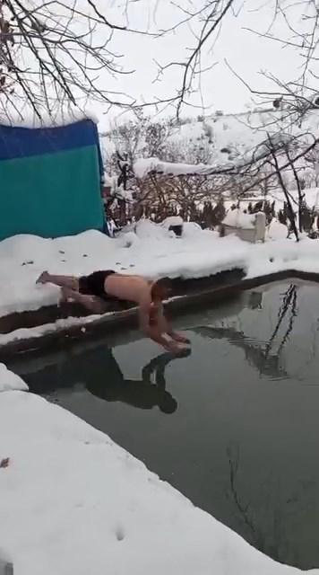 Siirt’te eksi 2 derece havuza girdi; o anlar kamerada