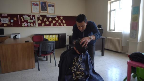 Akif ÖZALP/SİİRT (DHA)- SİİRT’te Cumhuriyet İlkokulu'nda 15 yıldır görev yapan sınıf öğretmeni Kerem Aydın, erkek öğrencilerini gönüllü olarak tıraş ediyor.