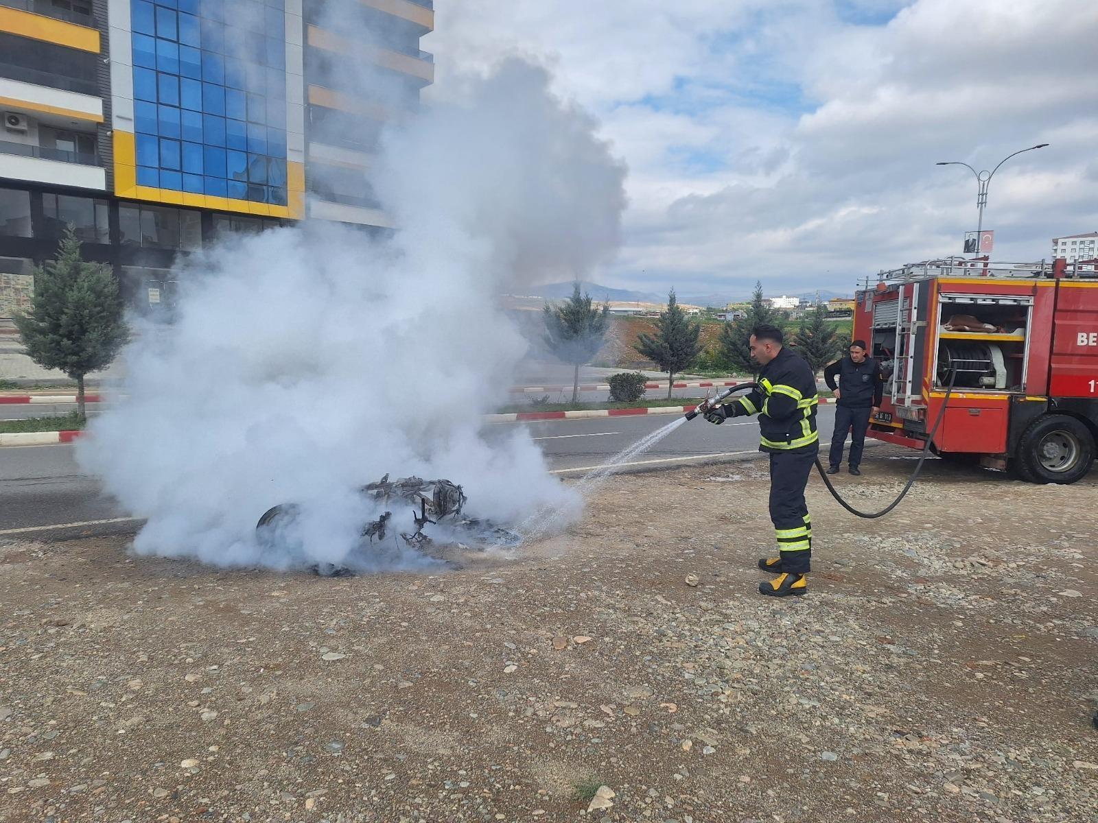 Olay, Veysel Karani Mahallesi Siirt Kurtalan karayolunda meydana geldi. E.K. yönetimindeki motosiklet seyir halindeyken alev aldı. Motosikleti yolun kenarında bulunan boş alana çeken E.K., durumu itfaiyeye bildirdi. İhbarla bölgeye sevk edilen ekiplerin müdahalesiyle yangın söndürülürken, motosiklet kullanılamaz hale geldi. (DHA)