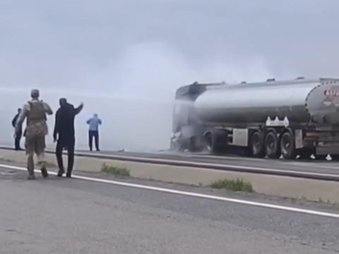 Cizre’de seyir halindeki akaryakıt tankeri alev aldı