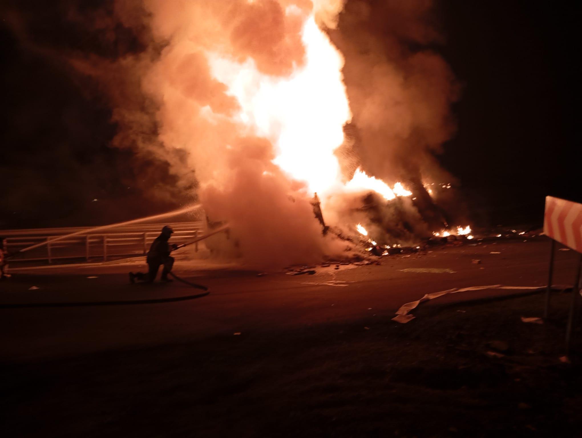 Devrilip alev alan TIR'ın şoförü hayatını kaybetti