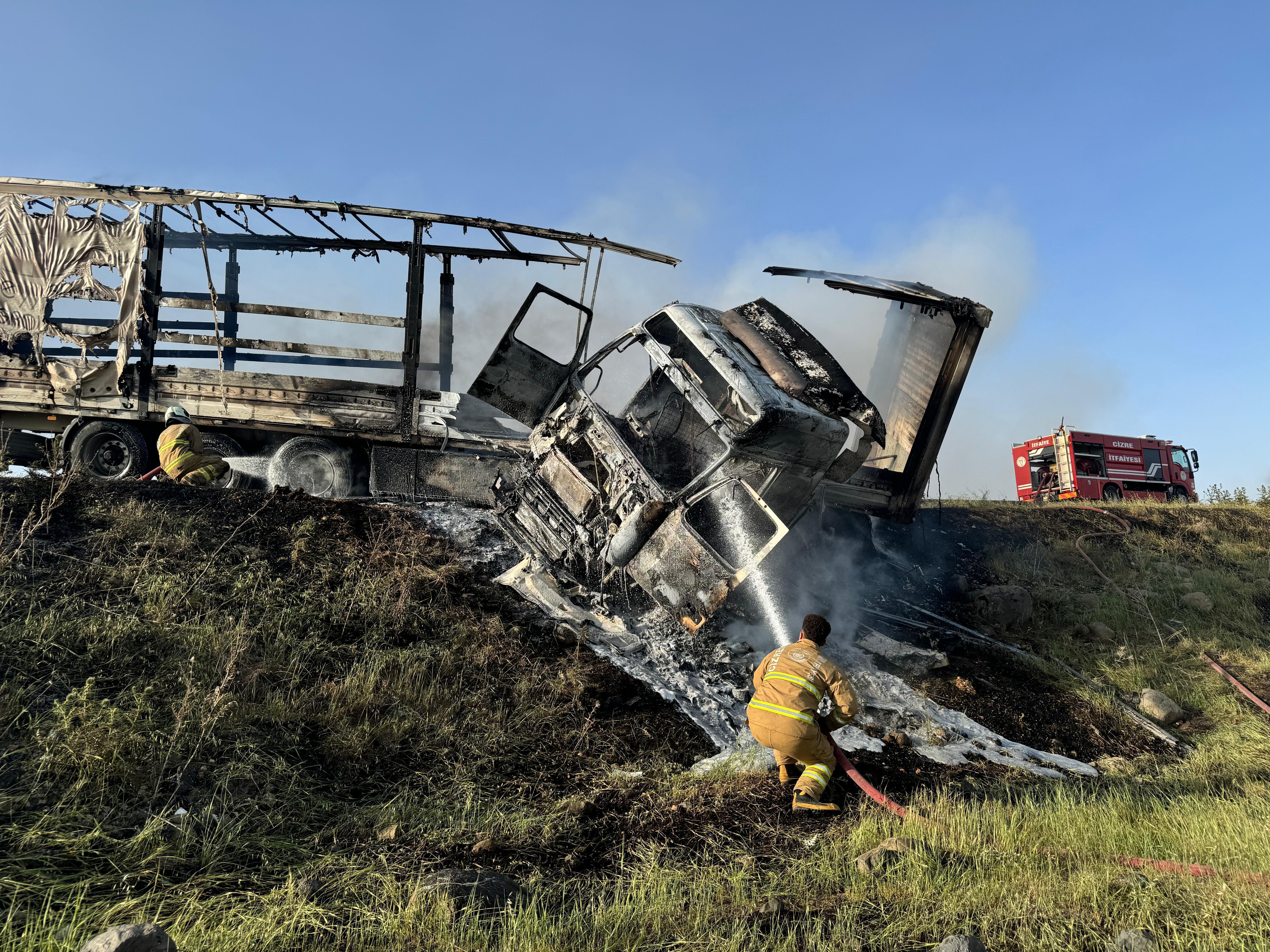 Olay, sabah saatlerinde İdil İlçesi Çığır Köyü mevkiinde meydana geldi. Halil İ. idaresindeki 47 PN 560 plakalı TIR, seyir halindeyken henüz bilinmeyen bir nedenle lastik kısmından alev alarak yanmaya başladı. Şoförü, aracı durdurup durumu 112 Acil Çağrı Merkezi’ne bildirdi. İhbarla olay yerine itfaiye, sağlık ve jandarma ekipleri sevk edildi. Yangın, ekiplerin müdahalesiyle kontrol altına alınarak söndürüldü. Yangında TIR kullanılamaz hale gelirken, yangının çıkış nedeninin belirlenmesi için inceleme başlatıldı.(DHA)