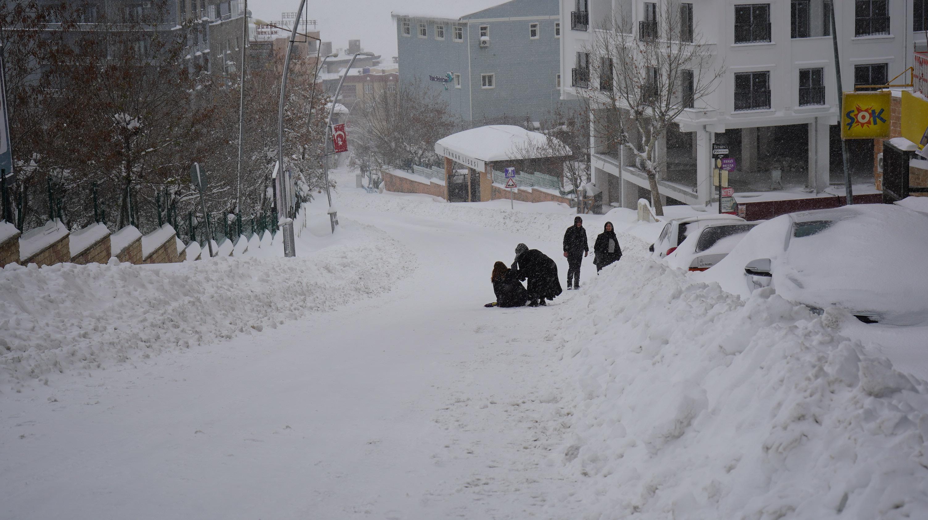 Kapanan yolların yeniden ulaşıma açılması için İl Özel İdaresi ve Karayolları ekipleri bölgede kar küreme ve yol açma çalışmalarını sürdürürken, belediye ekipleri de kent merkezinde buzlanma riskine karşı kar temizleme ve tuzlama çalışması yaparak sürücülerin ve yayaların güvenliği için önlem aldı. (DHA)