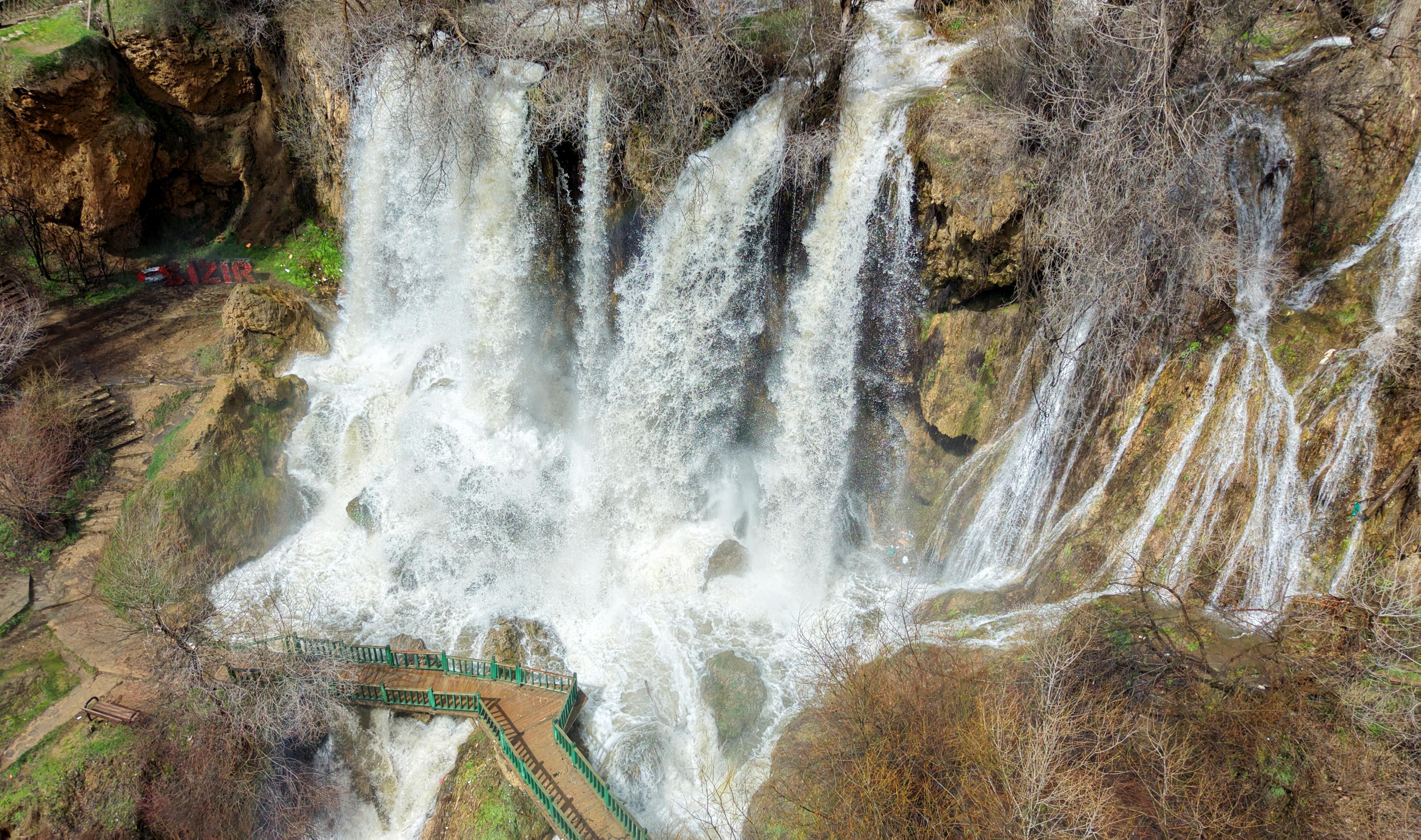 1350 rakımda konumlanan ve 22 metre yükseklikten dökülen şelale, 7 ayrı noktadan süzülen sularıyla Anadolu'nun en etkileyici doğal alanlarından biri olma özelliği taşıyor. Yağışlarla birlikte son 20 yılın en coşkun halini alan şelale, çok sayıda ziyaretçi çekmeye başladı. Obruk şelalesi olma özelliğiyle benzerlerinden ayrılan doğa harikası şelale, dökülen sularının çıkardığı yüksek ses ile de dikkat çekti. Şelalenin son yılların en yüksek akış düzeyine ulaştığını duyan doğaseverler, bölgeye akın etti. Ziyaretçiler bu anları ölümsüzleştirmek için bol bol hatıra fotoğrafı çektirdi. Ziyaretçiler, uzun zamandır şelaleyi ilk kez bu kadar coşkulu gördüklerini belirterek, tüm doğa tutkunlarını bu manzarayı yerinde görmeye davet etti.