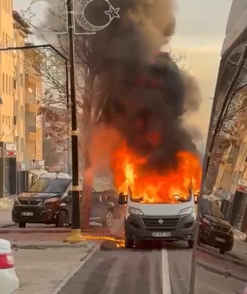 Uğur YİĞİT/SİVAS, (DHA)- SİVAS'ta caddede park halindeki minibüste çıkan yangın, itfaiye ekipleri tarafından söndürüldü.