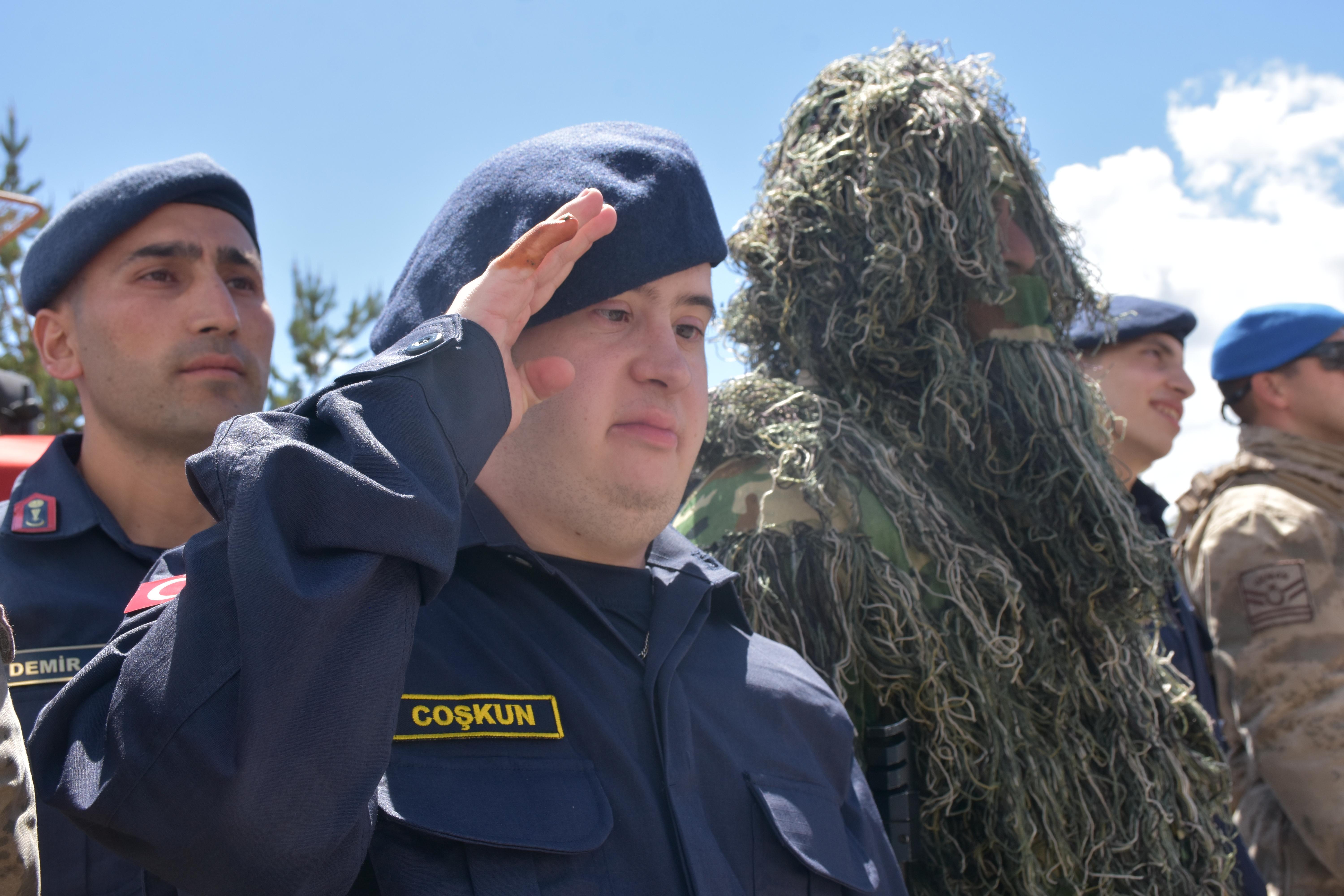 Engelli derneklerinin girişimleri ile İl Jandarma Komutanlığı'na gelen 9 engelli, askeri bot ve kamuflajlarını giydikten sonra eğitime alındı. Kışlada vatani görevini yapan askerler, burada komutanlarının gözetiminde engelli bireylere eşlik etti. Engelliler, asker selamı vermeyi, 'rahat' ve 'hazır ol' gibi komutları öğrendi. Eğitimlerin ardından kışlada engelliler için yemin töreni düzenlendi. Programa Vali Yardımcısı İhsan Maskar, İl Jandarma Komutanı Jandarma Kıdemli Albay Adem Taşkın, Belediye Başkan Yardımcısı Esra Meran Uslu, il protokolü ile diğer davetliler katıldı. Saygı duruşunda bulunulup, İstiklal Marşı'nın okunmasıyla engelli gençler, ellerini Türk bayrağı ve silahların üstüne koyup ant içti. Vali Yardımcısı Maskar, engellilere katılım belgesi verdi.