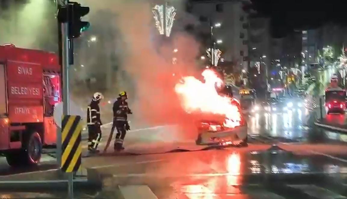 Sivas'ta taksi, alev alev yandı