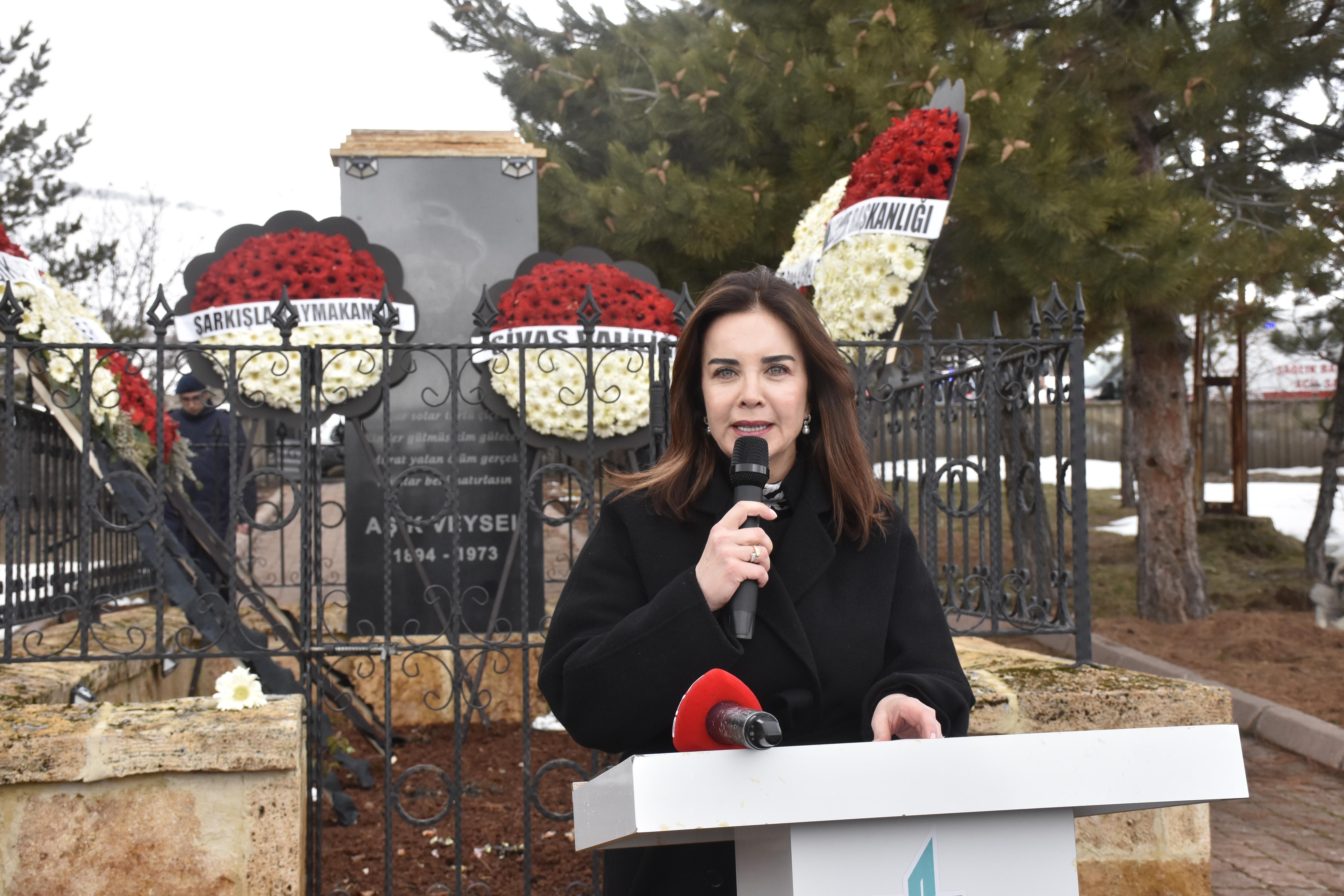 Eraydın AYTEKİN-Yıldırım ŞİMŞEK/ŞARKIŞLA (Sivas), (DHA)- TÜRK halk edebiyatının usta ismi Aşık Veysel Şatıroğlu, vefatının 53’üncü yıl dönümünde düzenlenen programla mezarı başında anıldı. Vali Yardımcısı Halil İbrahim Yeşilyurt, "Aşık Veysel Şatıroğlu, sevgiyi, hoşgörüyü ve insanlığı, diliyle ve yüreğiyle insanlara aktaran yalnızca bir halk ozanı değil, aynı zamanda derin bir irfanın ve güçlü bir gönül dünyasının temsilcisidir" dedi.