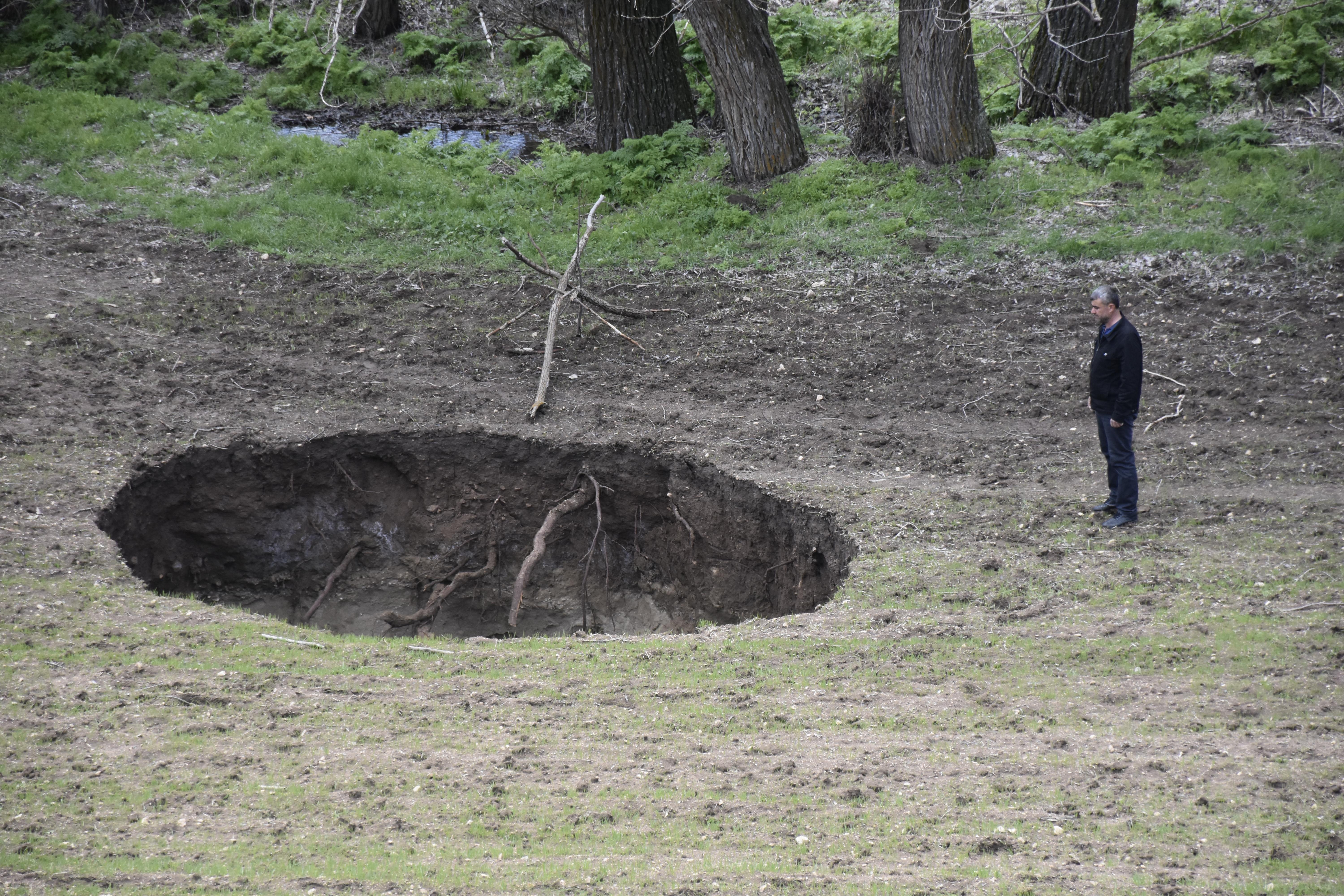 Sivas'ta tarlada 7 metre çapında obruk oluştu