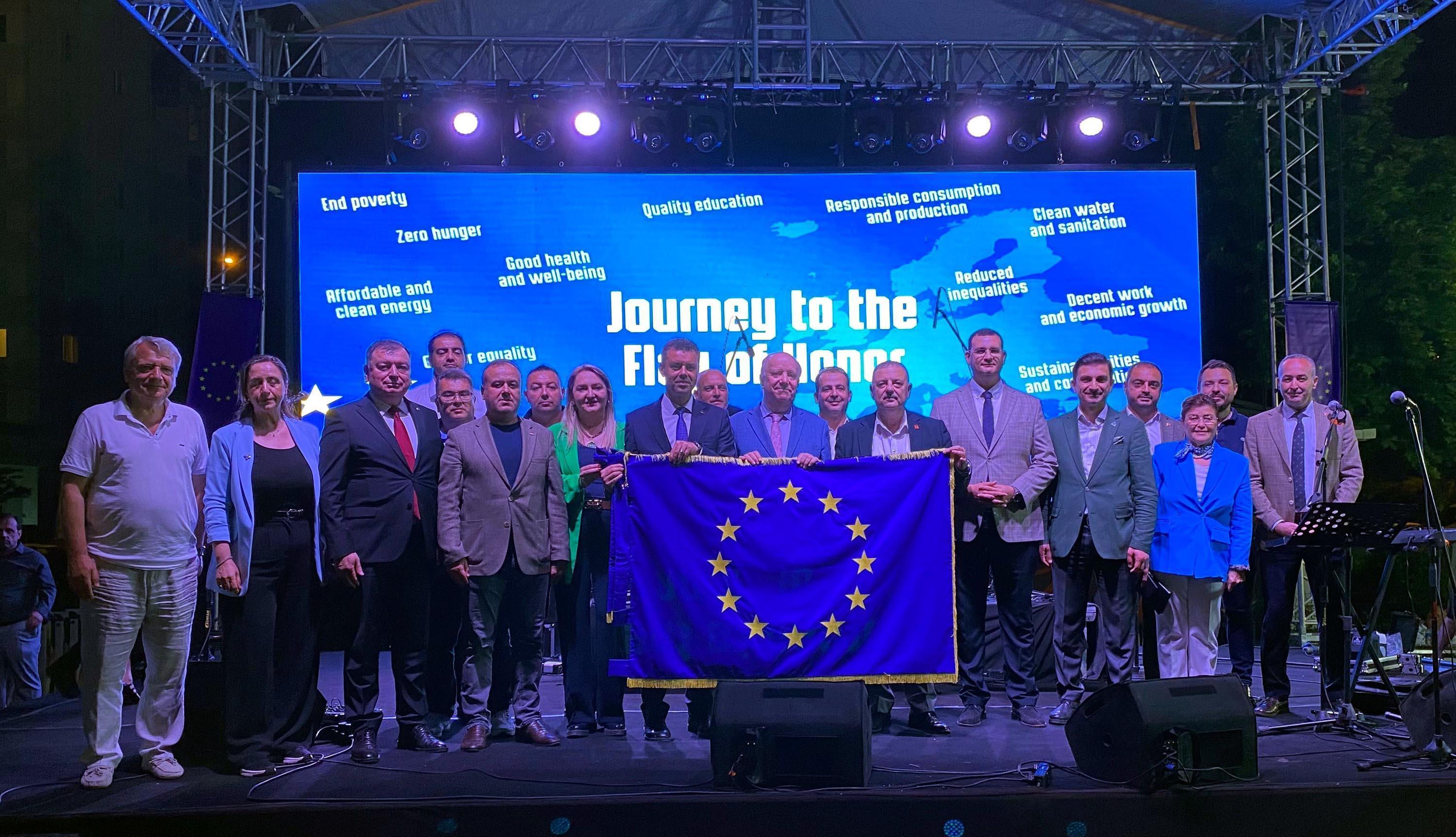 Avrupa Konseyi tarafından Avrupa Şeref Bayrağı Ödülü'ne layık görülen Çorlu'da ödül Nazım Hikmet Ran Parkı'nda düzenlenen törenle alındı. Törende Avrupa Konseyi Parlamenter Meclisi Avrupa Ödülü Alt Komitesi Üyesi Joseph O'Reilly, ödülü Çorlu Belediye Başkanı Ahmet Sarıkurt'a takdim etti. Çorlu'nun Avrupa Şeref Bayrağı Ödülü'ne giden sürece ilişkin sinevizyon gösterisi yapıldı.Törende konuşan başkan Sarıkurt, Avrupa ülkeleri ile yaptıkları çalışmaları anlatarak, "Avrupa Konseyi'nin; Avrupa değerlerine bağlılık, demokrasiye katkı, uluslararası iş birliğine açıklık ve toplumsal dayanışma gibi kriterlerle dayanarak Çorlu'muza layık gördüğü Avrupa Şeref Bayrağı ödülü, Çorlu'muzun dünya ile kurduğu güçlü bağların ve çağdaş vizyonunun bir göstergesidir. Her zaman üreten, düşünen, paylaşan, ortak akılla hareket eden bir kent olmayı hayal ettik. Bu hayalin peşinden koşarken yalnızca kendi sınırlarımız içinde değil; uluslararası düzeyde, şehirlerarası dostlukları güçlendiren, kültürler arası bağları çoğaltan bir anlayışı benimsedik. Avrupa şehirleri ile her zaman samimi ilişkiler kurduk; kardeş şehirlerimizle kültürel, sportif ve ekonomik iş birlikleri kurmaya özen gösterdik, yurt dışında ülkemizi en iyi şekilde temsil etmenin gururunu yaşadık" dedi.