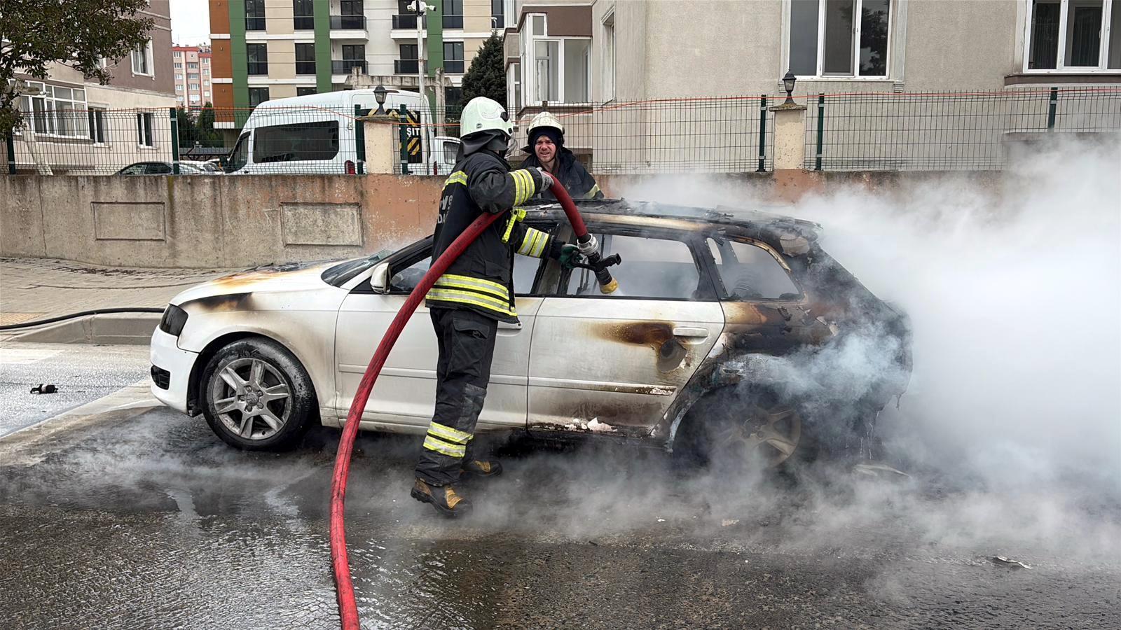 Olay, Nusratiye Mahallesi Kurtuluş Caddesi’nde meydana geldi. N.Ö. idaresindeki 22 ABC 749 plakalı otomobilden, seyir sırasında duman yükselmeye başladı. Durumu fark eden sürücü, aracı yol ortasında durdurarak kendini dışarı attı. Bir anda alevler büyürken, ihbarla bölgeye itfaiye, sağlık ve polis ekipleri sevk edildi. Ekiplerin müdahalesiyle yangın söndürülürken, otomobil kullanılamaz hale geldi. Yangının çıkış nedenine ilişkin inceleme başlatıldı. (DHA)