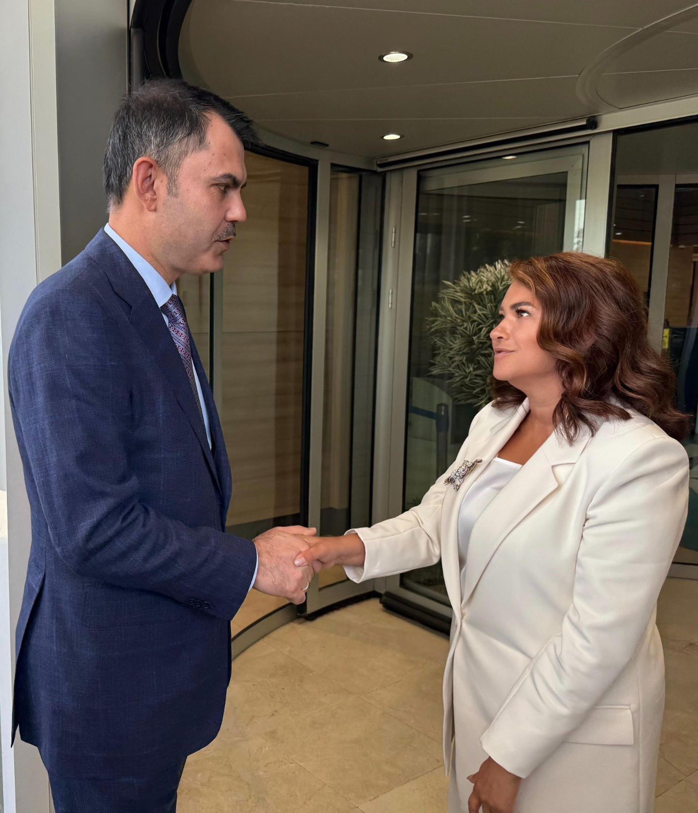 Mehmet YİRUN/ERGENE(Tekirdağ), (DHA)- TEKİRDAĞ'ın Ergene İlçesi Belediye Başkanı Müge Yıldız Topak, Çevre, Şehircilik ve İklim Değişikliği Bakanı Murat Kurum’u makamında ziyaret etti. Görüşmede, Ergene’de hayata geçirilmesi planlanan projeler ele alındı.