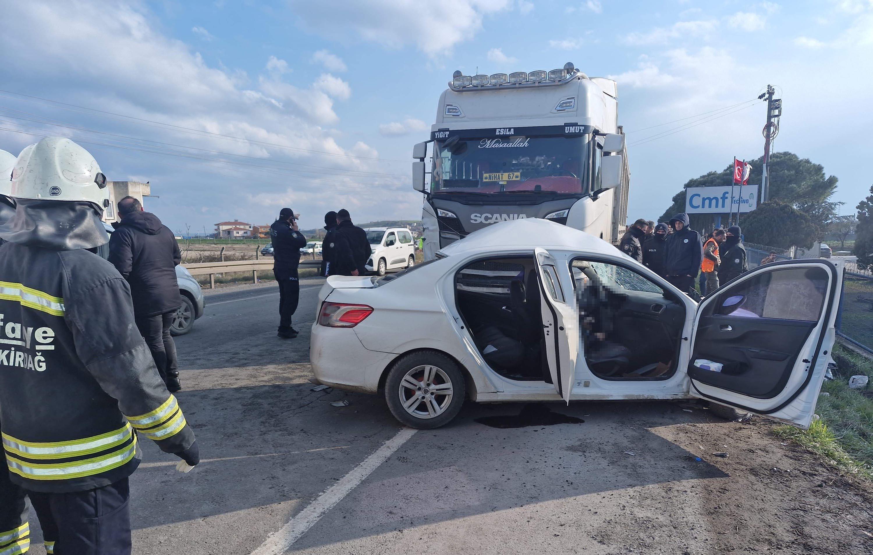 Şafak TAŞOYAR/ MARMARAEREĞLİSİ (Tekirdağ), (DHA)- TEKİRDAĞ'ın Marmaraeğrelisi ilçesinde, TIR ile otomobilin çarpıştığı kazada 1 kişi yaşamını yitirdi, 2 kişi yaralandı.