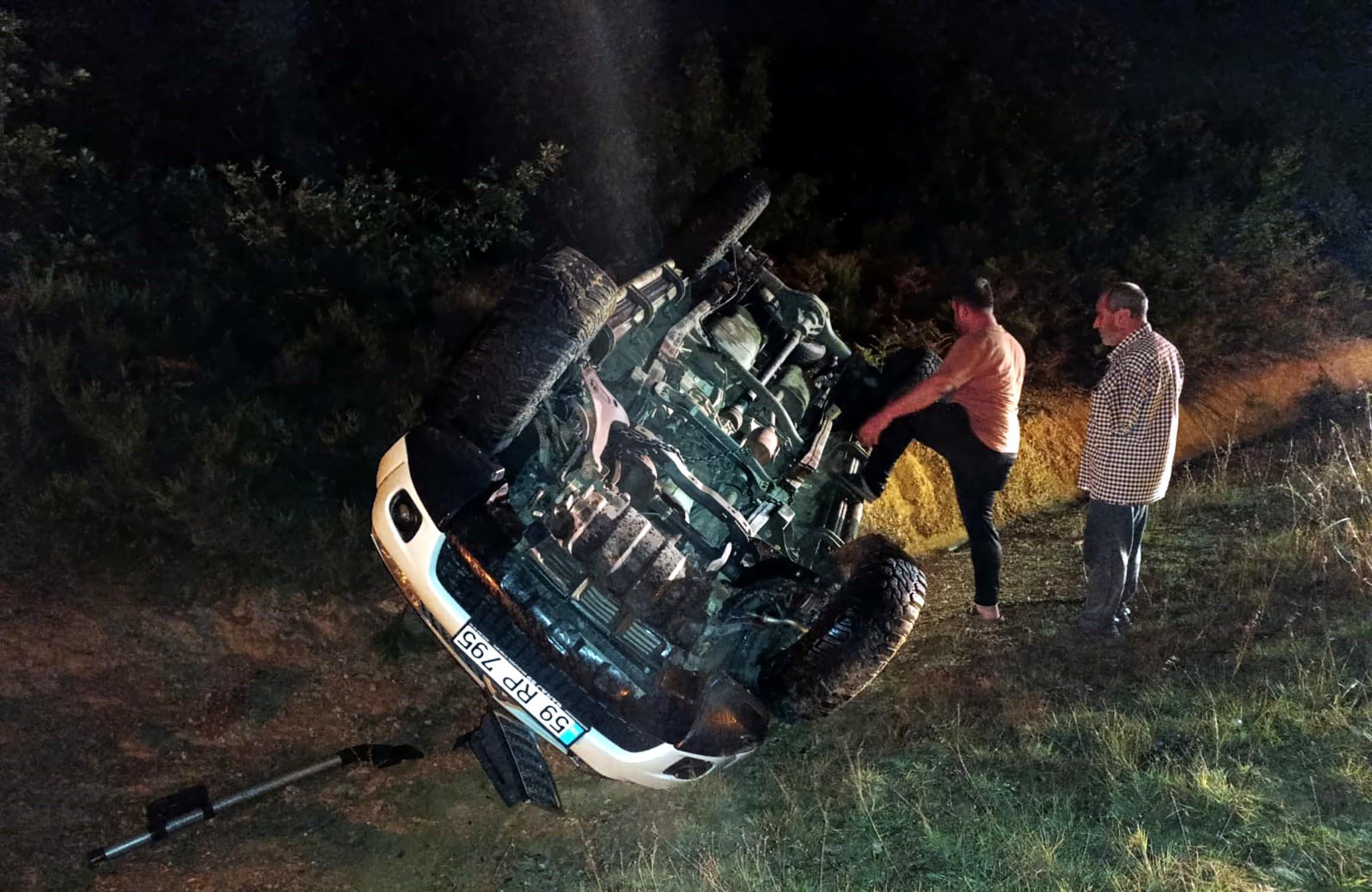 Kaza, akşam saatlerinde Saray- Kıyıköy karayolunun 3'üncü kilometresinde meydana geldi. H.B.'nin kullandığı 59 RP 795 plakalı kamyonet, sürücüsünün direksiyon kontrolünü yitirmesi sonucu takla atarak yol kenarında ters döndü. İhbarla bölgeye jandarma, sağlık ve itfaiye ekipleri sevk edildi. Ters dönen kamyonette yaralanan sürücü H.B. ile araçtaki M.B., ekipler tarafından çıkarıldı. Saray Devlet Hastanesi'ni kaldırılarak tedaviye alınan yaralıların durumunun iyi olduğu öğrenildi.