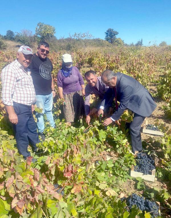 Nuri ÇAĞLAR/ŞARKÖY(Tekirdağ), (DHA)- TEKİRDAĞ'ın Şarköy ilçesi kaymakamı Hakan Kılınçkaya, Yörgüç Mahallesi'nde bağ bozumuna katıldı.