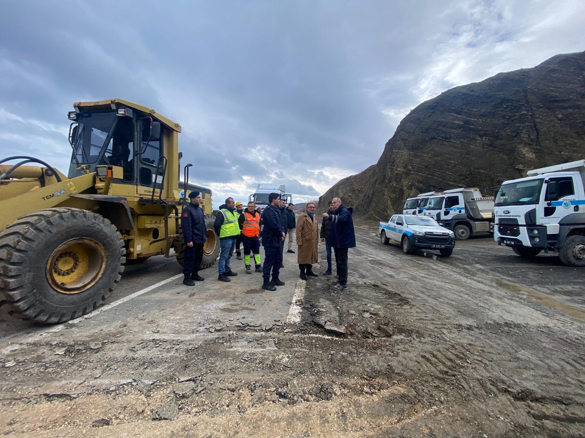 Tekirdağ'da heyelan nedeniyle kapanan yolda kontrollü ulaşım