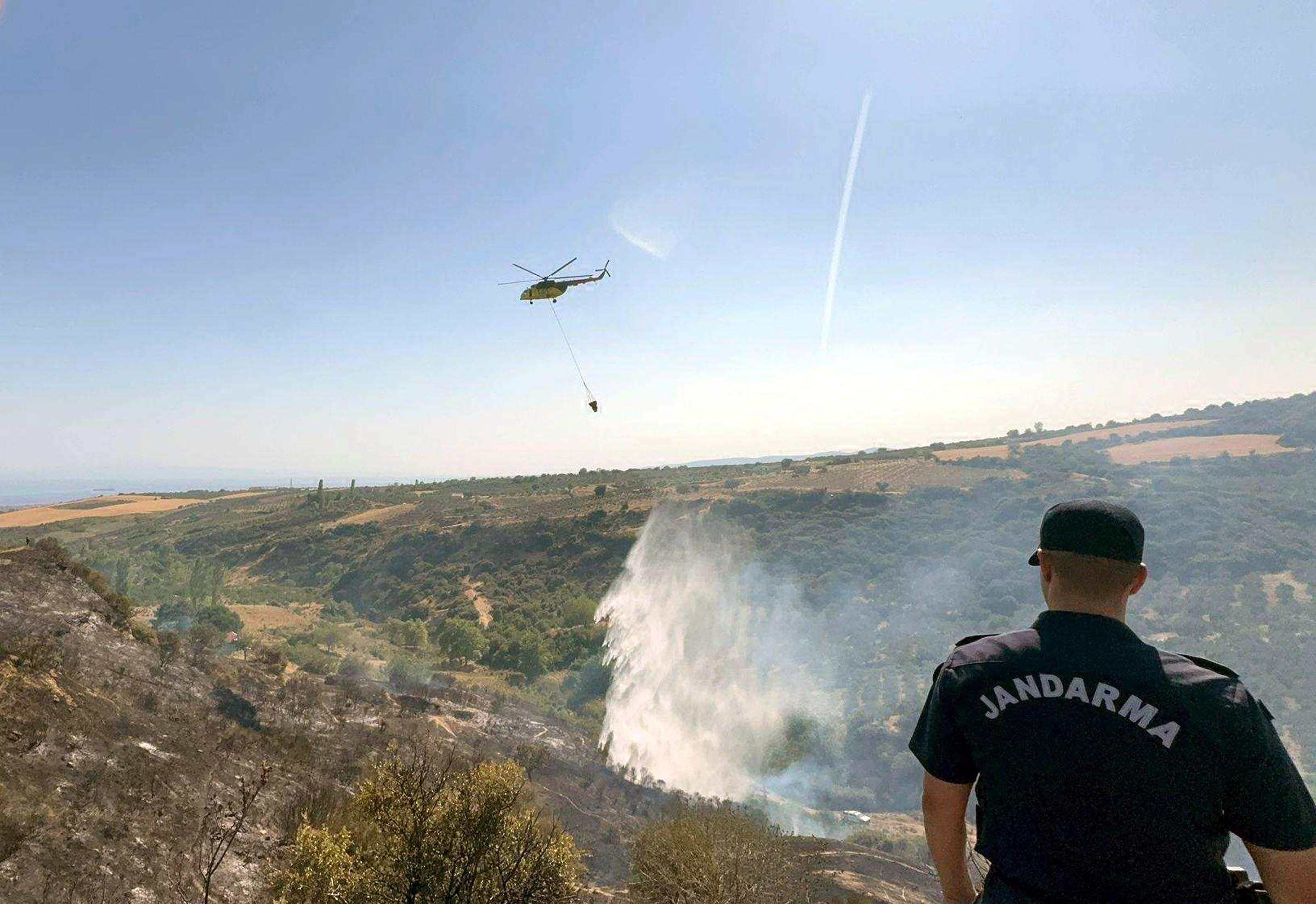 Nuri ÇAĞLAR-Şafak TAŞOYAR/ŞARKÖY(Tekirdağ), (DHA)-TEKİRDAĞ'ın Şarköy ilçesinde otlukta çıkıp, makilik alana sıçrayan yangın, havadan ve karadan yapılan çalışmayla söndürüldü.