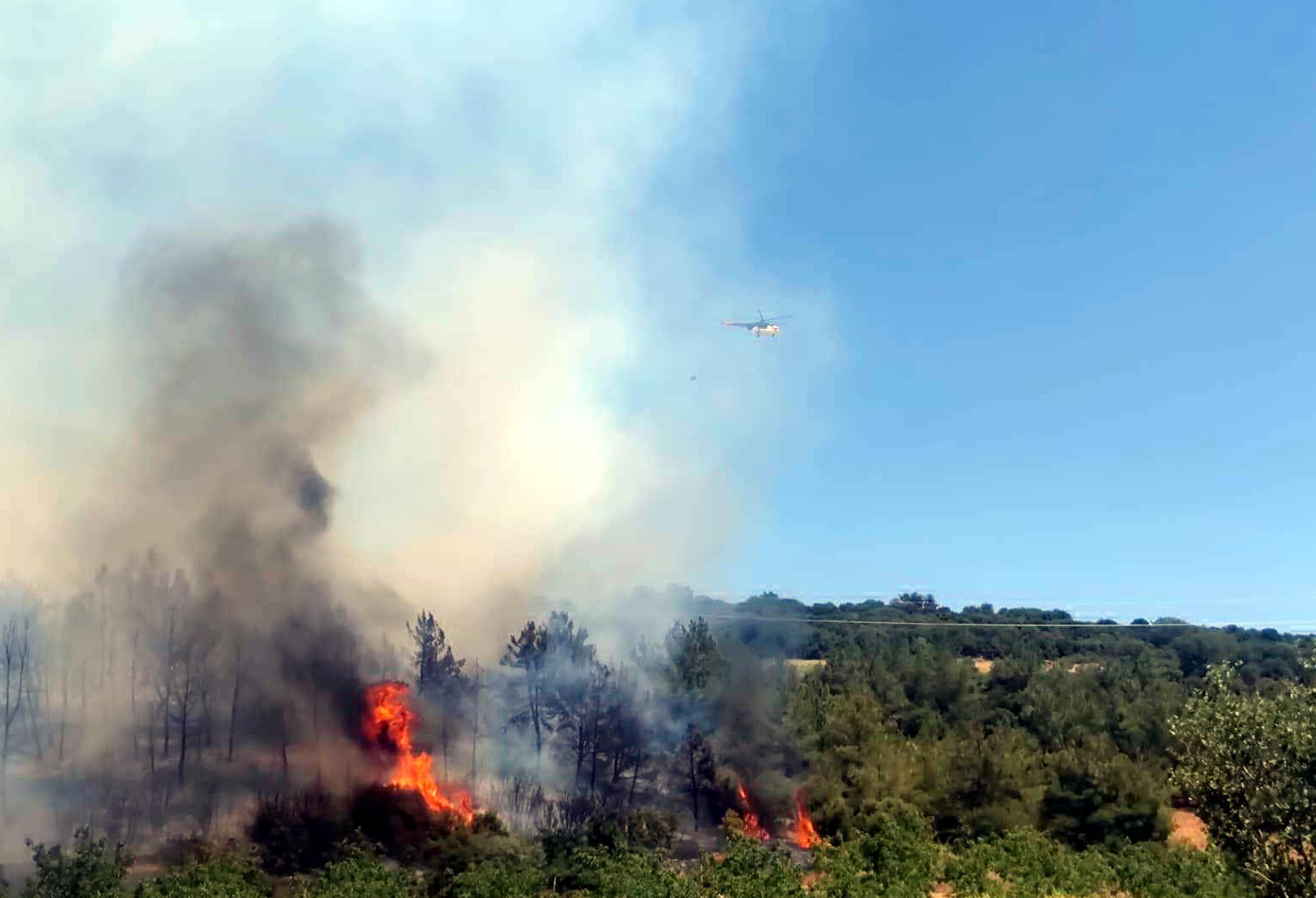 Nuri ÇAĞLAR/ŞARKÖY (Tekirdağ), (DHA)- TEKİRDAĞ'ın Şarköy ilçesinde çıkan anız yangını ormana sıçradı. İtfaiye ekipleri yangına havadan ve karadan müdahale ediyor.