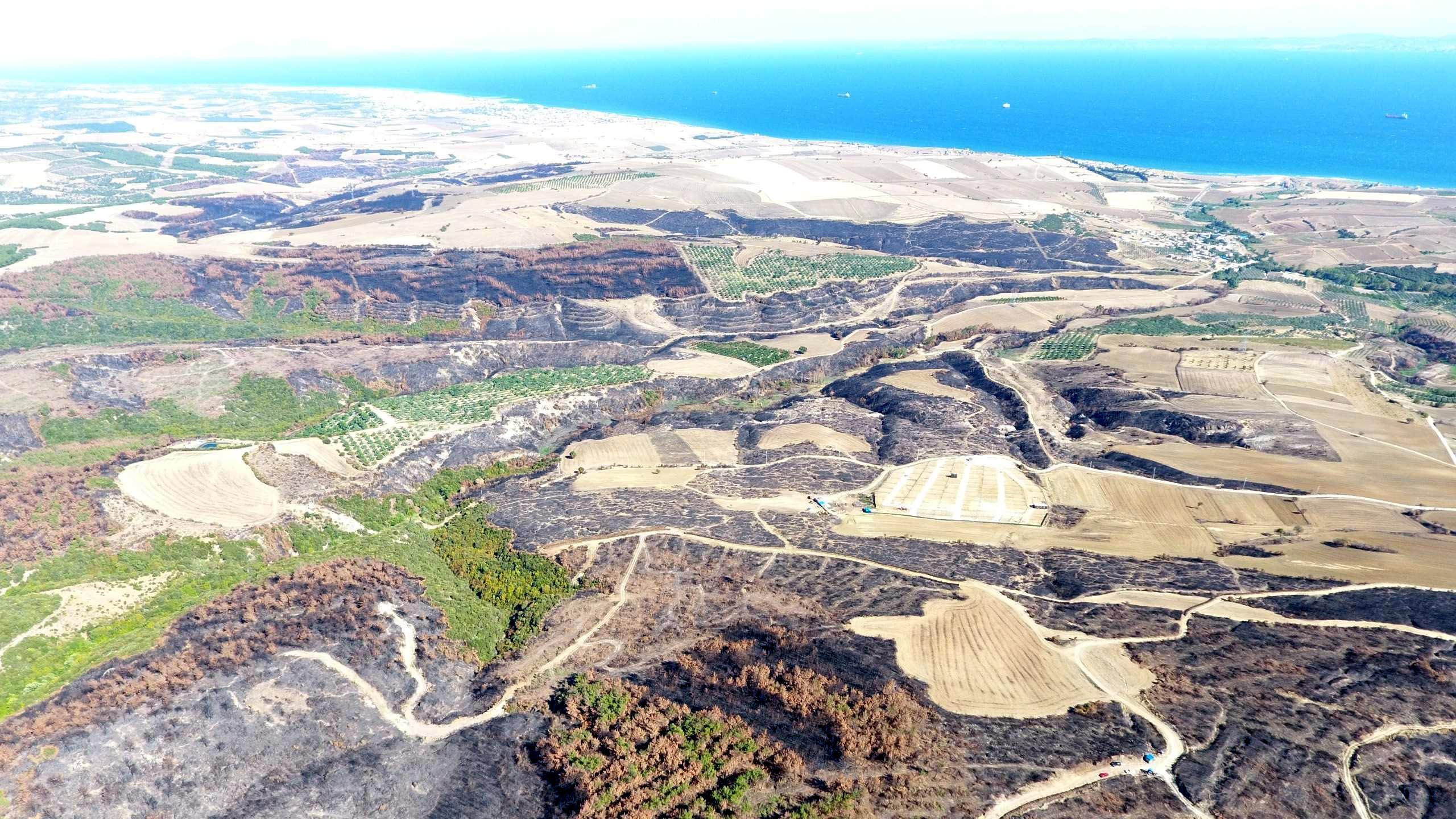 Tekirdağ'da yanan orman temizleniyor, kesilen ağaçlar istifleniyor