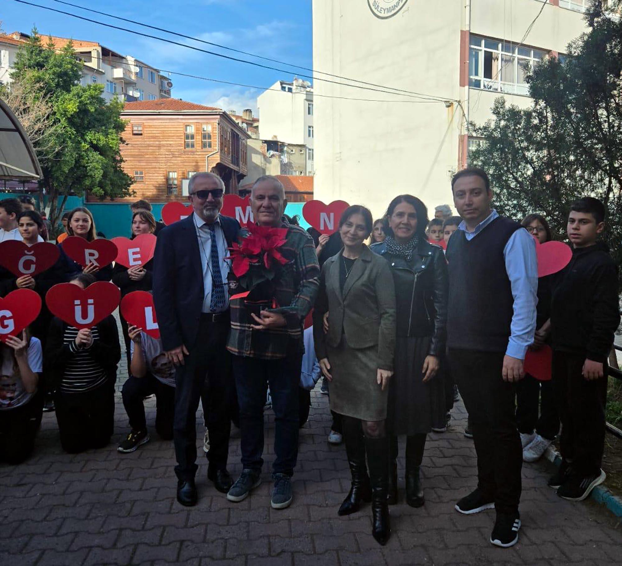 Abdullah YALÇIN/TEKİRDAĞ, (DHA)- TEKİRDAĞ'ın Süleymanpaşa ilçesindeki 50'nci Yıl Ortaokulu'nda uzun yıllar görev yapan Teknoloji ve Tasarım Öğretmeni Cafer Akar (65), 38 yıllık meslek hayatını noktalayıp emekliye ayrılırken duygusal anlar yaşadı. Koridor ve merdiven boyunca sıralanan öğrenciler, öğretmenlerini alkışlarla uğurladı