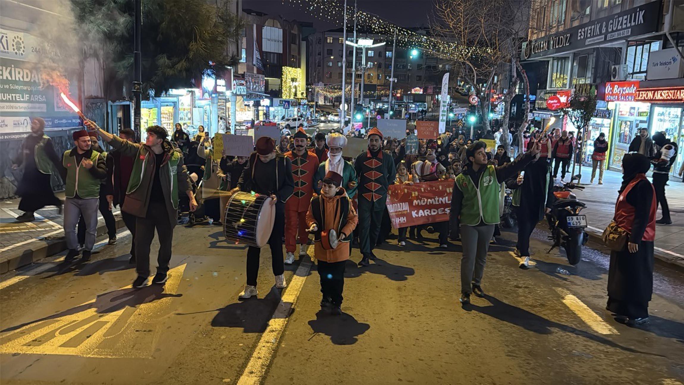 Tekirdağ'da bazı sivil toplum örgütleri ramazan ayını karşılamak için yürüyüş düzenledi. Süleymanpaşa ilçesinde Köprübaşı mevkisinde toplanan aralarında kadın ve çocukların da bulunduğu kalabalık, yürüyüşe geçti. Ramazan ayının manevi atmosferini yaşatmak amacıyla organize edilen etkinlikte katılımcılar, ellerindeki fenerlerle Hükümet Caddesi boyunca yürüdü. Yaklaşık 1 kilometrelik yürüyüş boyunca tekbirler getirildi, salavatlar okundu, ilahiler söylendi. Aileleriyle yürüyüşe katılan çocuklar ise taşıdıkları fenerlerle kentin sokaklarını aydınlattı. Dualar eşliğinde yapılan yürüyüş Valilik Meydanı'nda sone erdi.