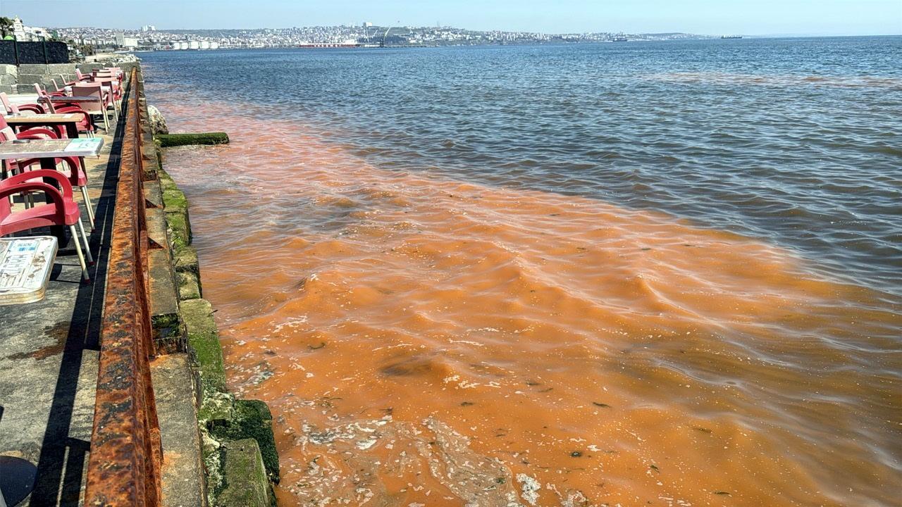 Tekirdağ sahilinde alg patlaması nedeniyle deniz turuncu renge büründü