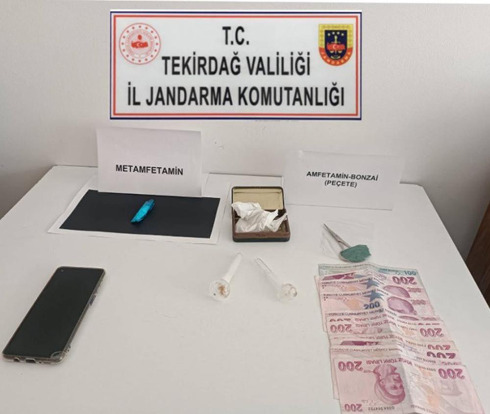 Tekirdağ İl Jandarma Komutanlığı tarafından 14-21 Temmuz tarihleri arasında, Süleymanpaşa ilçesine bağlı Aydoğdu ve Zafer Mahalleleri’nde iki adreste, Kapaklı ilçesi Mimarsinan Mahallesi'nde ve Çerkezköy ilçesi Veliköy Mahallesinde şüphelilerin üzerinde, Hayrabolu ilçesindeyse bir araç ve iş yerinde arama yapıldı. Aramalarda; 8 gram metamfetamin, peçeteye emdirilmiş 2 bonzai, 2 tabanca, 3 av tüfeği, 2 kuru sıkı tabanca, 1 kasatura, 2 bin 170 TL suçtan elde edildiği değerlendirilen para, 1 cep telefonu, 1 sikke, toplam 38 bin 848 doldurulmuş makaron ve 2 kilo açık tütün ele geçirildi.(DHA)