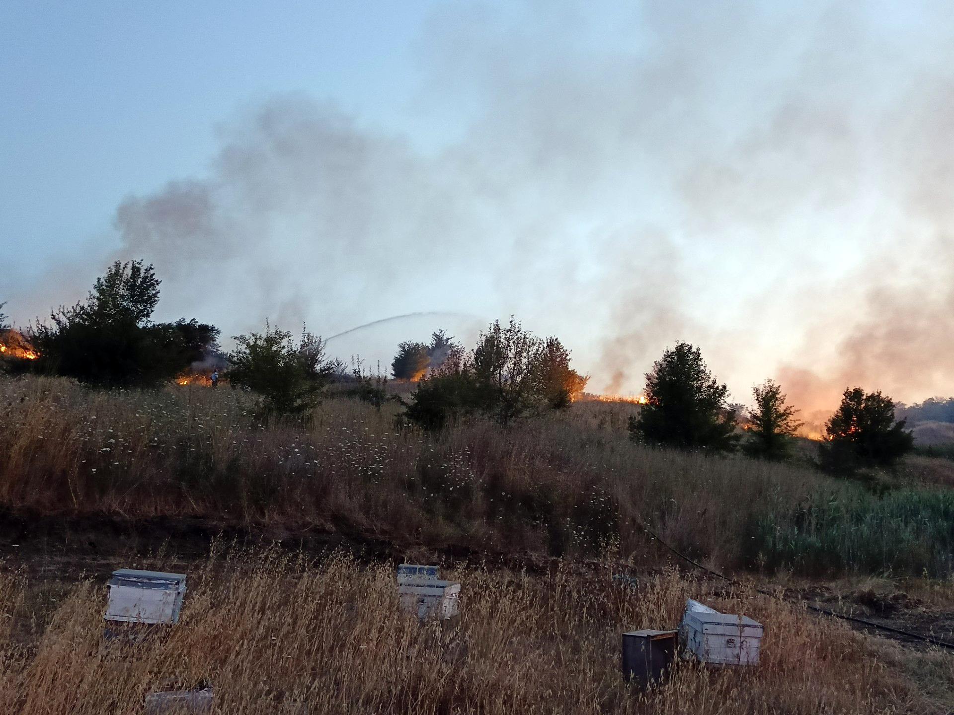 Şenol AKSOY/ SARAY (Tekirdağ), (DHA)- TEKİRDAĞ’ın Saray ilçesinde eski kömür ocağında ot yangını çıktı. Ekipler, alevlerin ağaçlara sıçramaması için çalışmalarını sürdürüyor.