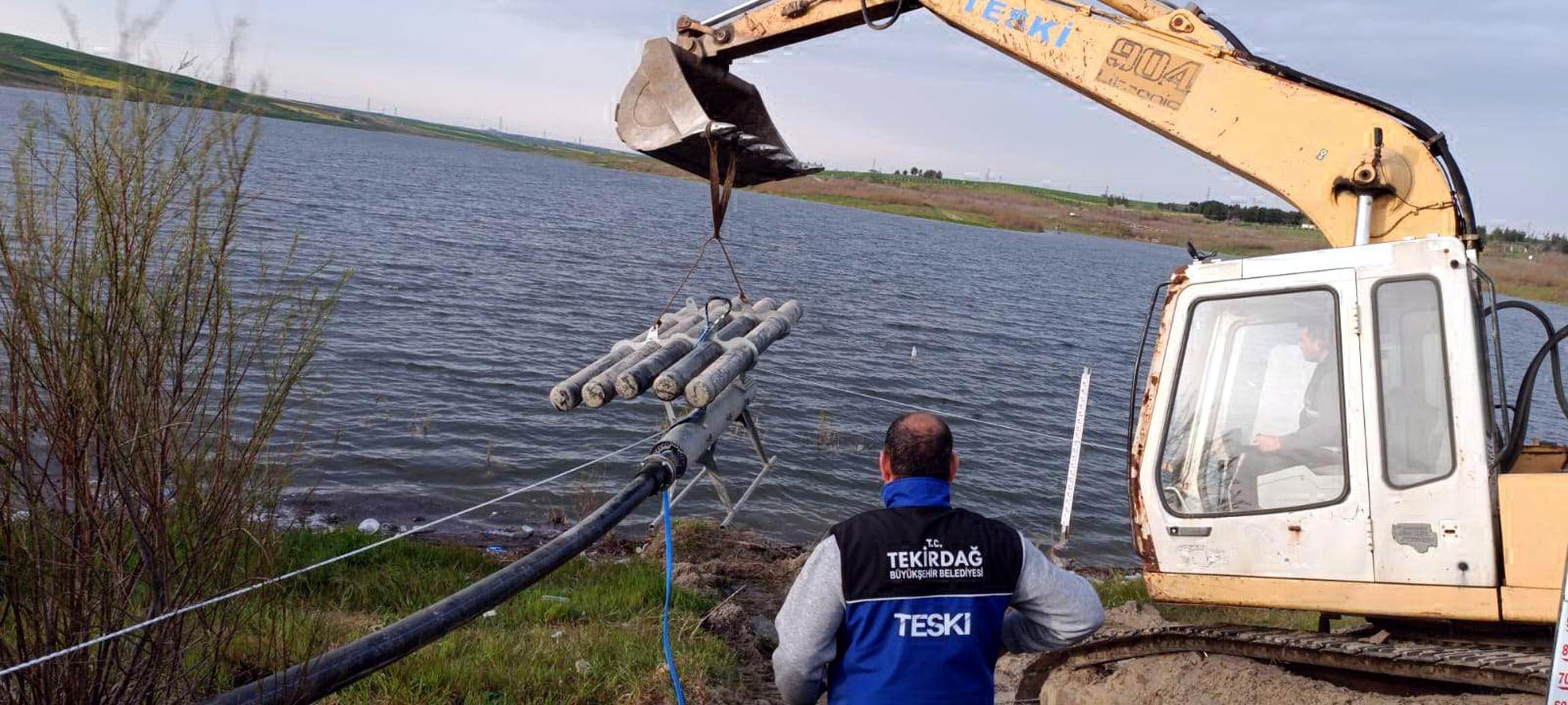 TEKİRDAĞ, (DHA)- TEKİRDAĞ Büyükşehir Belediyesi Su ve Kanalizasyon İdaresi (TESKİ), Marmaraereğlisi ilçesine içme ve kullanma suyu temin edilen Türkmenli Göleti'nde kuraklık nedeniyle son yıllarda gölette meydana gelen su kayıpları ve buna bağlı olarak artan su kalitesi sorunlarına çözüm üretmek amacıyla gölete yüzer terfi istasyonu kuruldu.