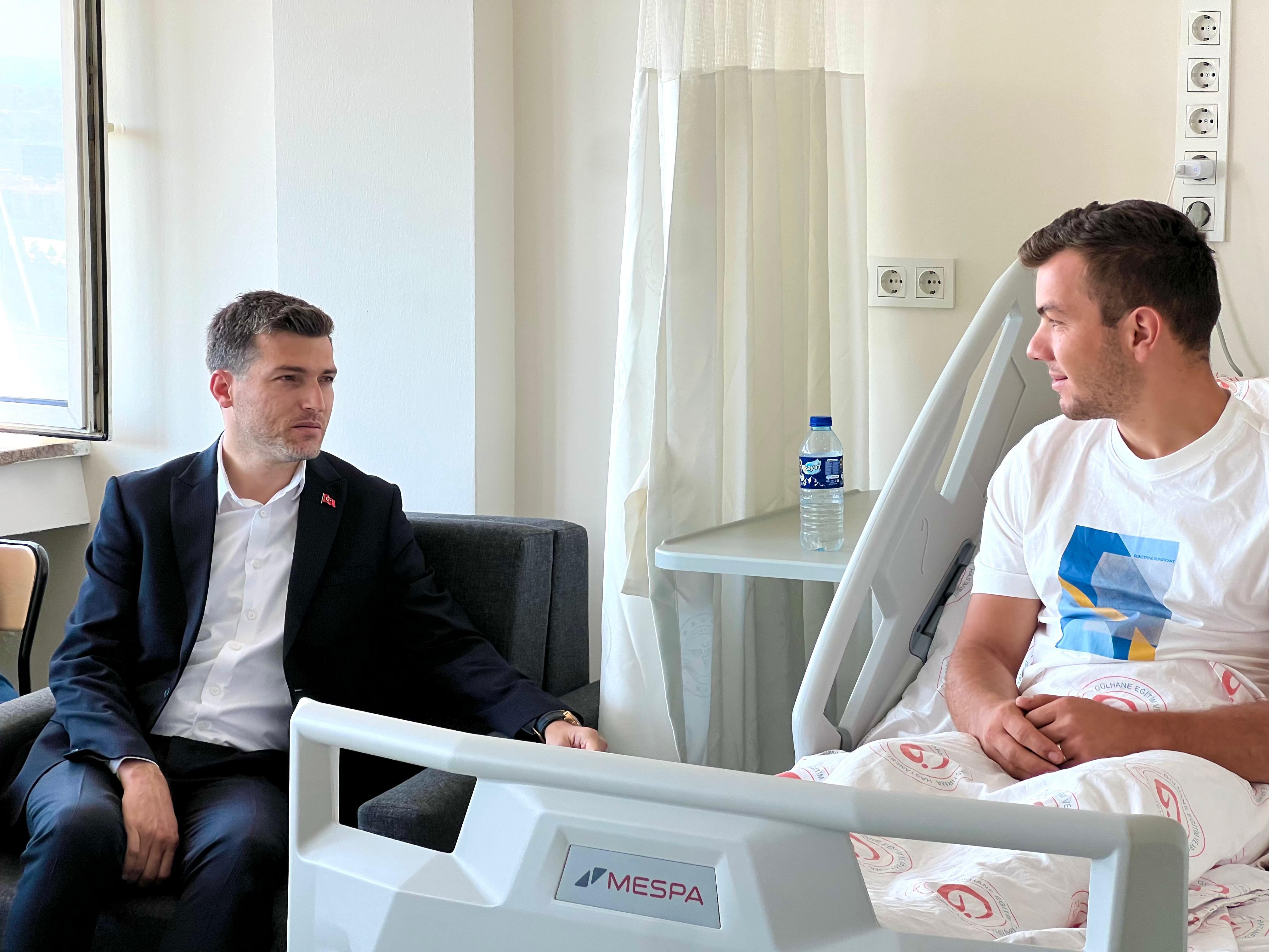 İbrahim UĞUR/ERBAA (Tokat), (DHA)- TOKAT’ın Erbaa İlçe Belediye Başkanı Ertuğrul Karagöl, Pençe-Kilit Harekâtı bölgesinde 12 askerin şehit olduğu olayda yaralanan Erbaalı Uzman Çavuş Ferhat Yurtalan’ı tedavi gördüğü Ankara Gülhane Eğitim ve Araştırma Hastanesi’nde (GATA) ziyaret etti.