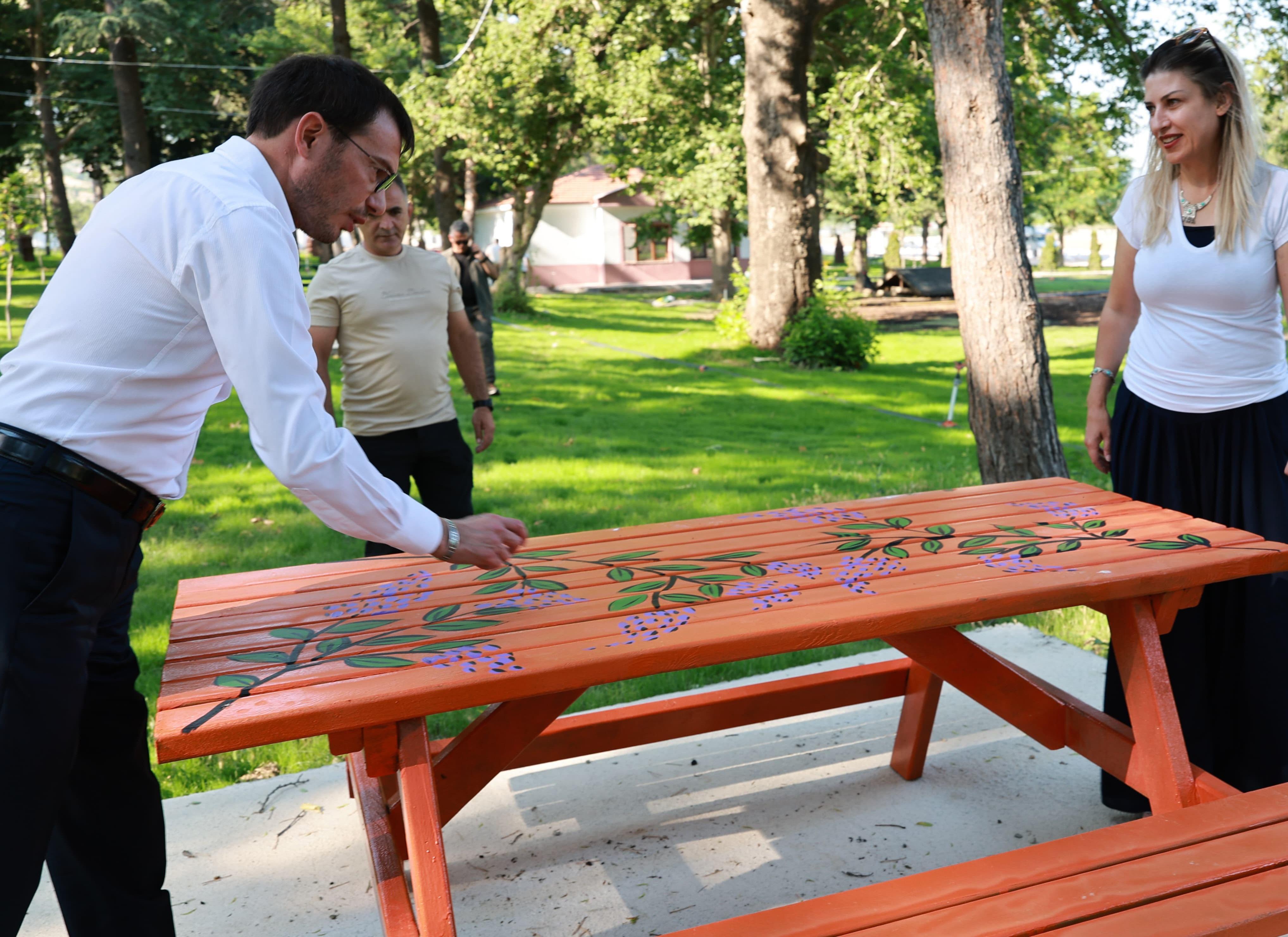 Yaz aylarında vatandaşların daha konforlu ve keyifli vakit geçirmesi hedeflenen alanda, piknik masaları rengarenk desenlerle süslenerek adeta birer sanat eserine dönüştürülüyor. Gümenek Mesire Alanı, vatandaşların doğayla, sanatla ve keyifli anlarla buluşacağı yeni bir cazibe merkezi olmaya hazırlanıyor. Tokat Belediye Başkanı Mehmet Kemal Yazıcıoğlu, çalışmaları yerinde inceleyerek, masalardan birini kendi elleriyle boyadı. Başkan Yazıcıoğlu, “Şehrimizin her köşesinde üretken belediyecilik anlayışıyla hem estetiğe hem de işlevselliğe değer katıyoruz. Gümenek mesire alanını Tokatlı hemşehrilerimizin ailece vakit geçirebileceği, sanatla iç içe bir nefes alma alanı haline getiriyoruz. Masalara yaptığımız canlı renkli desenler, çocuklardan yetişkinlere kadar tüm ziyaretçilerimize pozitif bir atmosfer sunmayı amaçlıyoruz. Öte yandan alanda barbekü alanları, oturma grupları ve çevre düzenlemeleriyle birlikte kapsamlı bir yenileme çalışması yaptık. İnşallah çok yakında hep birlikte burada piknik yapacak ve bu özel alanı hemşehrilerimizle buluşturacağız” dedi. (DHA)