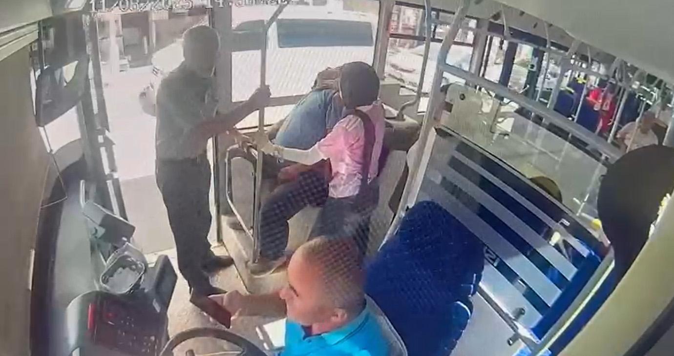 Otobüste fenalaşan yolcuya müdahale kamerada
