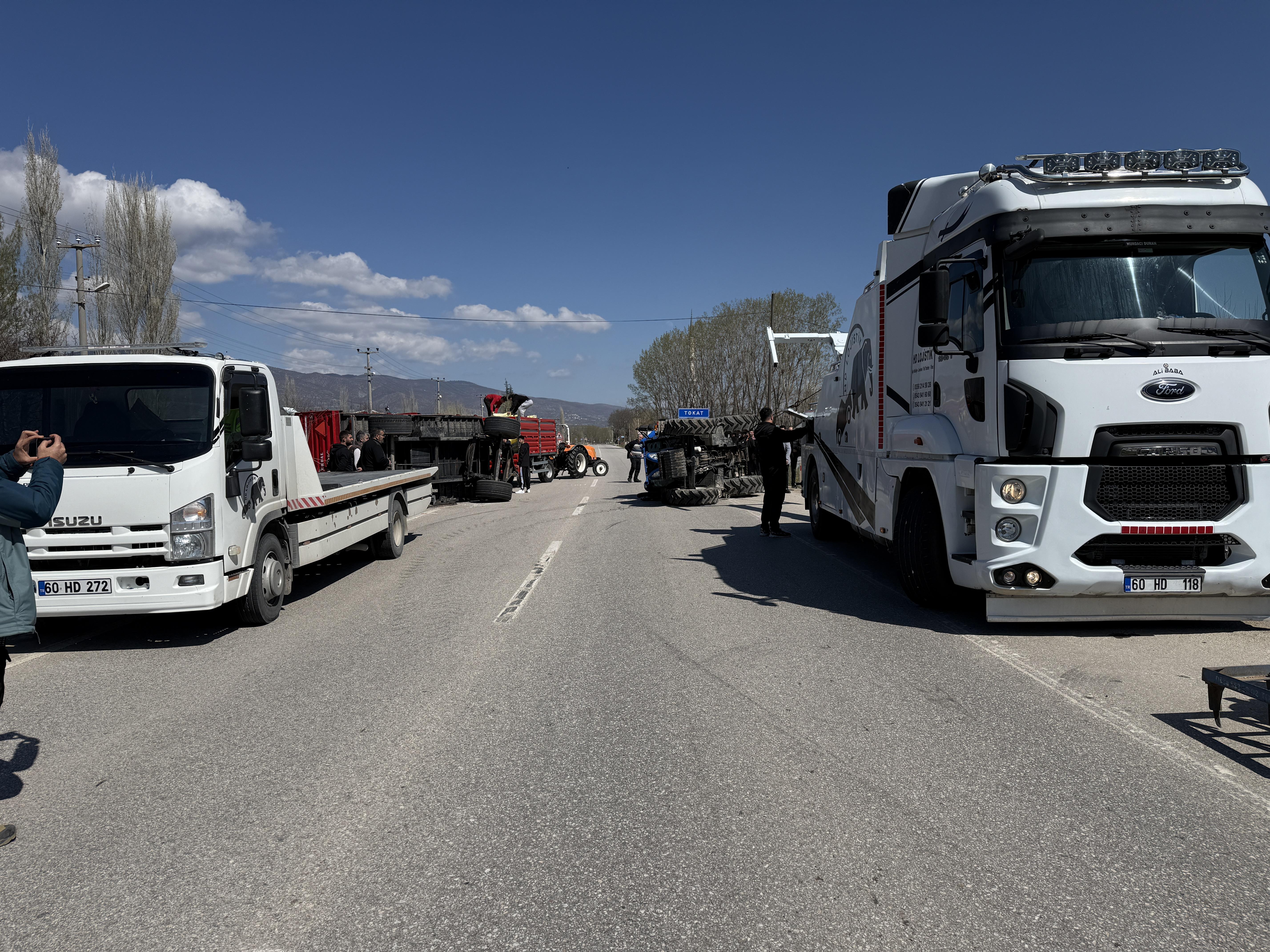 Tokat’ta gübre yüklü traktör devrildi, yol trafiğe kapandı