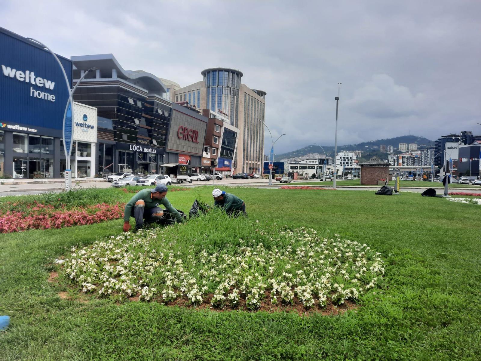 Trabzon Büyükşehir Belediyesi, şehrin her noktasını güzelleştirecek çalışmalara ara vermeden devam ediyor. Bu kapsamda Park ve Bahçeler Dairesi Başkanlığı’na bağlı ekipler, bitki dikme, bitki üretimi, çim biçme, budama, zemin onarımı, temizlik, ahşap, ferforje boyama, sulama ve ilaçlama gibi birçok çalışma gerçekleştiriyor. Aynı zamanda şehrin en işlek noktaları, ara refüjler ve parklar mevsim çiçekleri ile donatılıyor.