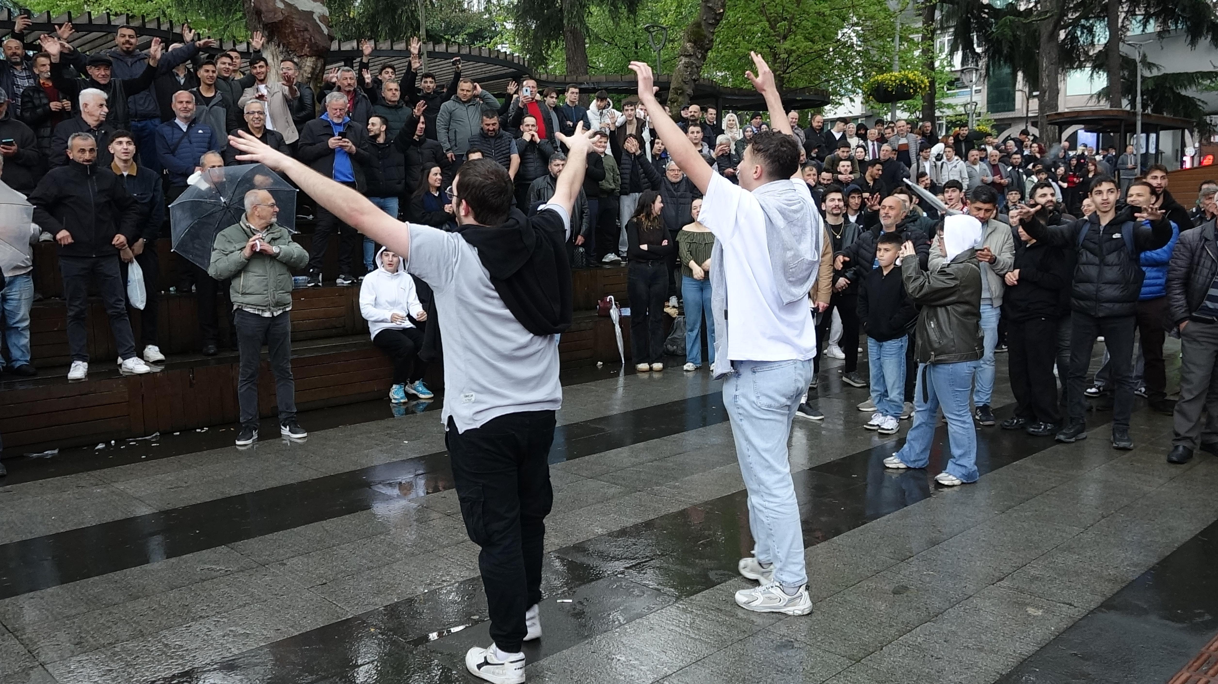 Finale yükselen Trabzonspor U19 Takımı'na yağmurda horonlu kutlama