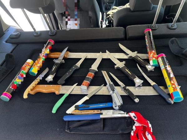 Selay SAYKAL/TRABZON,(DHA)-Trabzonspor-Kayserispor maçını izlemek üzere kente gelen Kayserispor taraftarlarını taşıyan otobüslerde çok sayıda bıçak, falçata ve havai fişek ele geçirildi.