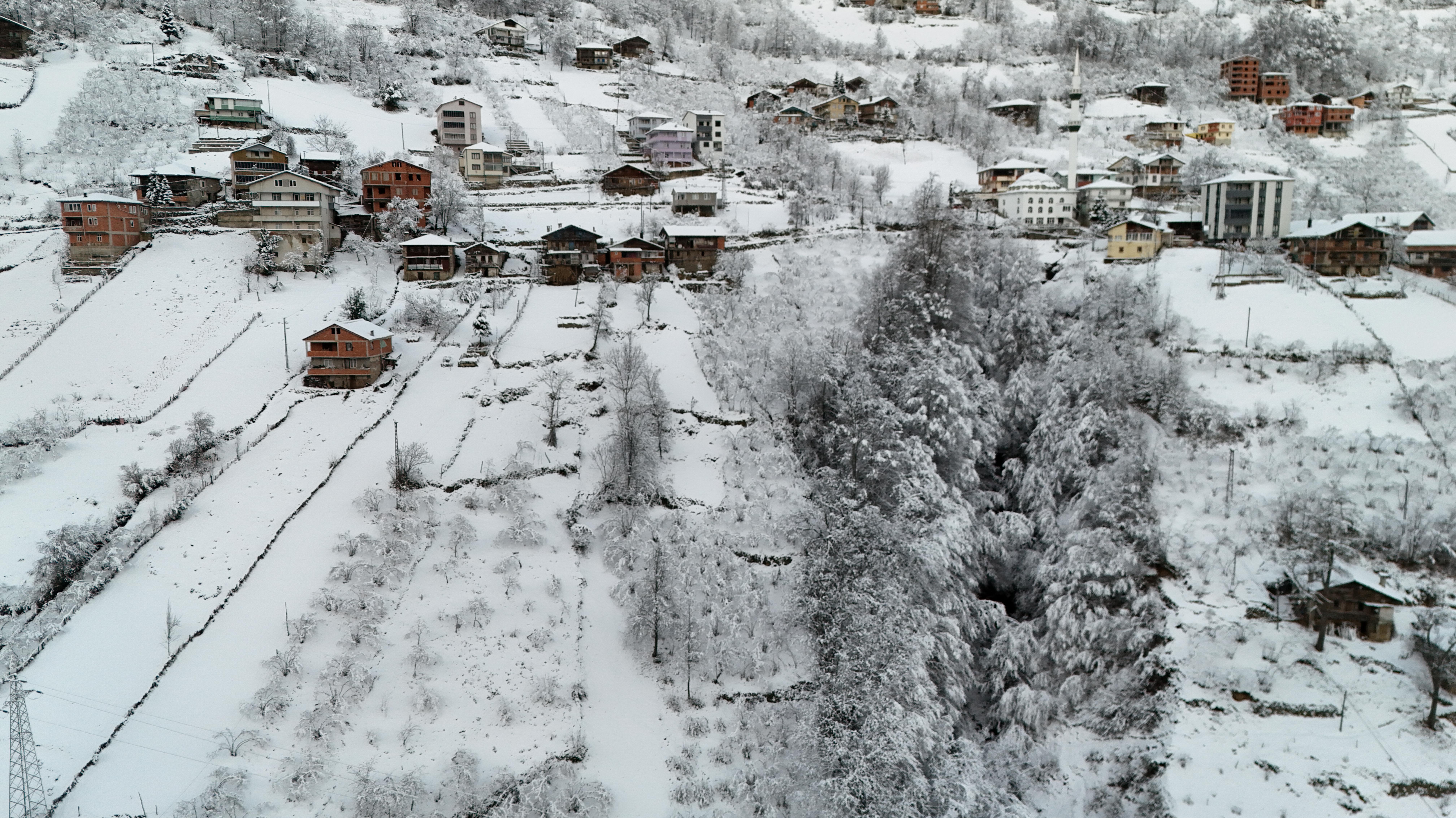 Karadeniz’in yüksek kesimleri, yağan karla beyaza büründü. Trabzon’un Köprübaşı ilçesindeki Büyükdoğanlı Mahallesi, aralıklarla etkisini sürdüren kar yağışının ardından beyaz örtüyle kaplandı. Çam ormanının karla bütünleştiği alanlarda özellikle gece saatlerinde ışıklarla güzel görüntüler oluştu. Dağ, yayla ve vadiler tamamen karla kaplanırken, kış mevsiminin Karadeniz’deki kar manzaraları dronla görüntülendi. (DHA)