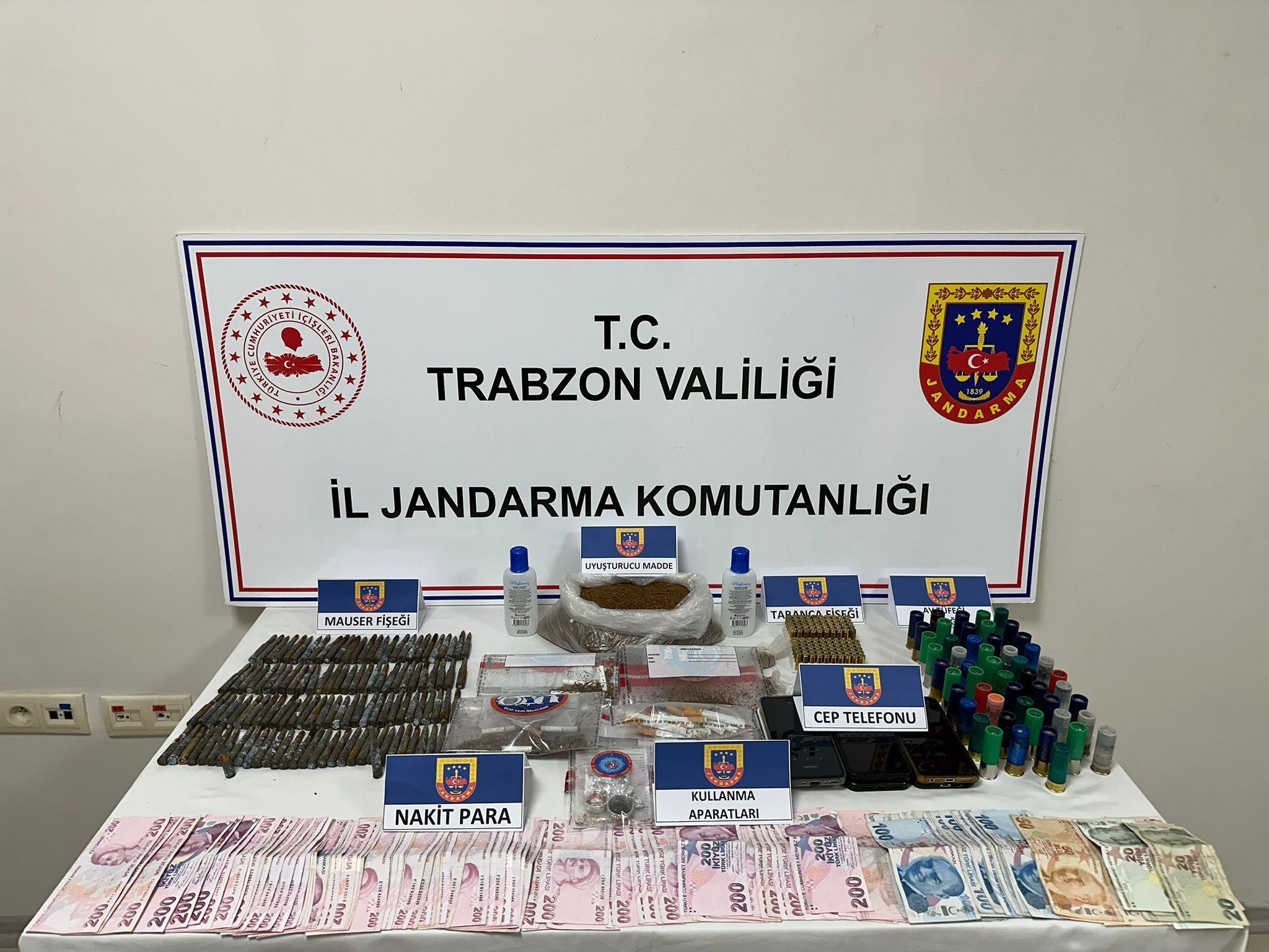 OF (Trabzon),(DHA)- TRABZON’un Of ilçesinde jandarma ekiplerince uyuşturucu ile mücadeleye yönelik düzenlenen operasyonda, çok sayıda uyuşturucu madde, mühimmat ile suç geliri para ele geçirildi, 11 şüpheli gözaltına alındı.