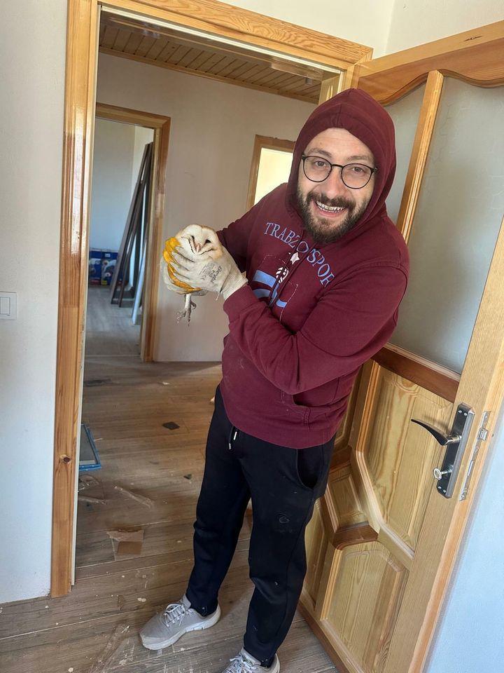 Eve giren baykuşu besledi, öperek doğaya saldı