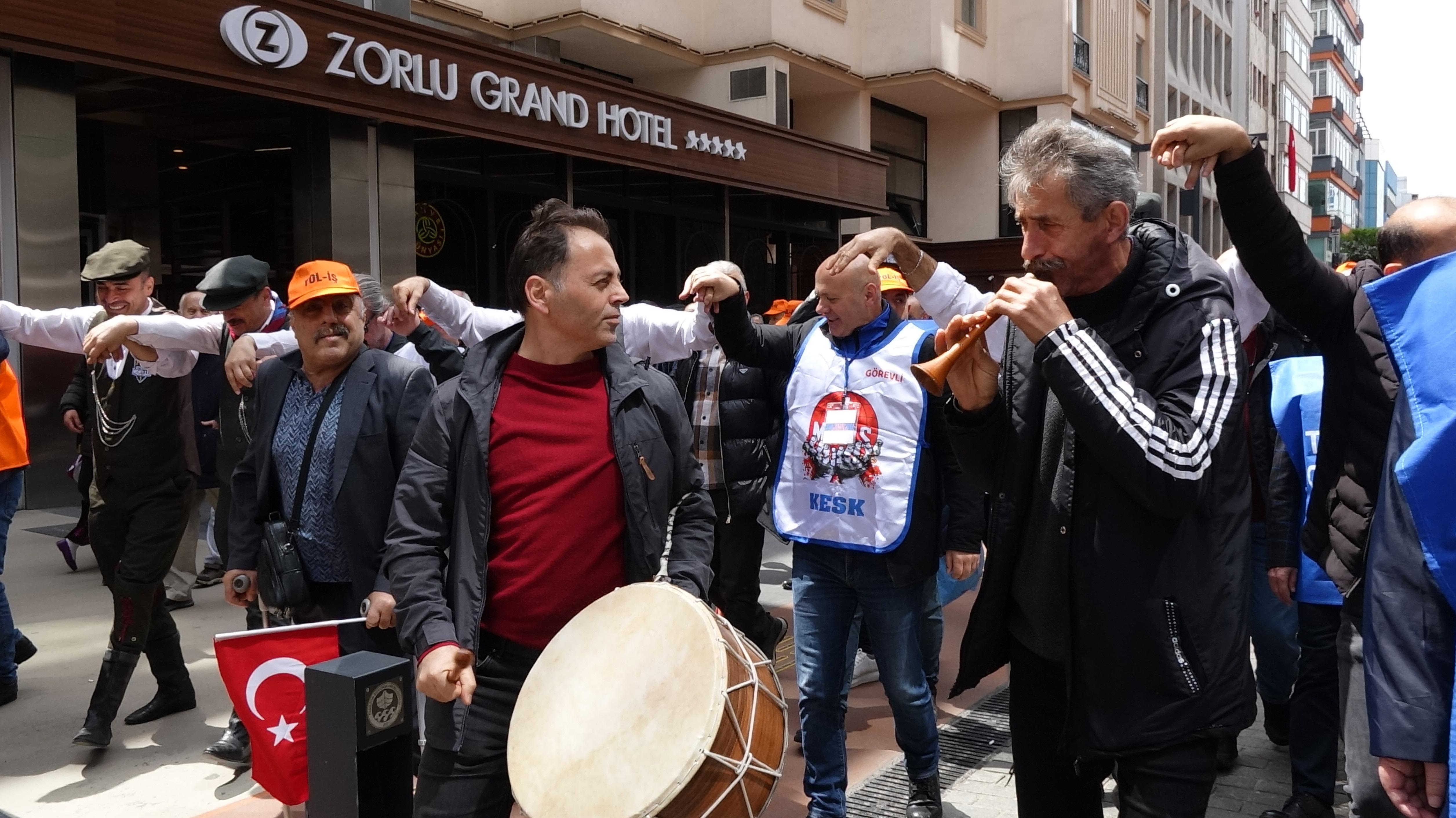 Efnan DEMİREREN/TRABZON, (DHA)- TRABZON'da 1 Mayıs Emek ve Dayanışma Günü kutlamak için toplanan kalabalık kortej, davul zurna eşliğinde horon oynayarak yürüdü.