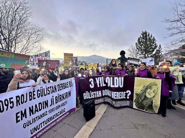 3 yıldır kendisinden haber alınamayan Gülistan Doku için, Kadın Platformu’nun çağrısıyla bir araya gelen öğrenciler, kadınlar ve Doku ailesi Cumhuriyet Caddesi'nde buluştu. Ellerinde Gülistan Doku'ya ait fotoğraflarla Seyit Rıza Meydanı’na yürüyüş gerçekleştiren grup adına açıklama yapan Eylül Yantemur, kadınların ve ailenin taleplerine kulak tıkandığını belirterek, Gülistan Doku’nun akıbetini sormaktan vazgeçmeyeceklerini söyledi. Açıklamanın ardından Doku ailesi ve açıklamaya katılanlar Gülistan Doku soruşturmasını aydınlığa kavuşması gerektiğini belirterek, yanlarında getirdikleri el fenerlerinin ve cep telefonların ışığını açtı. (DHA)